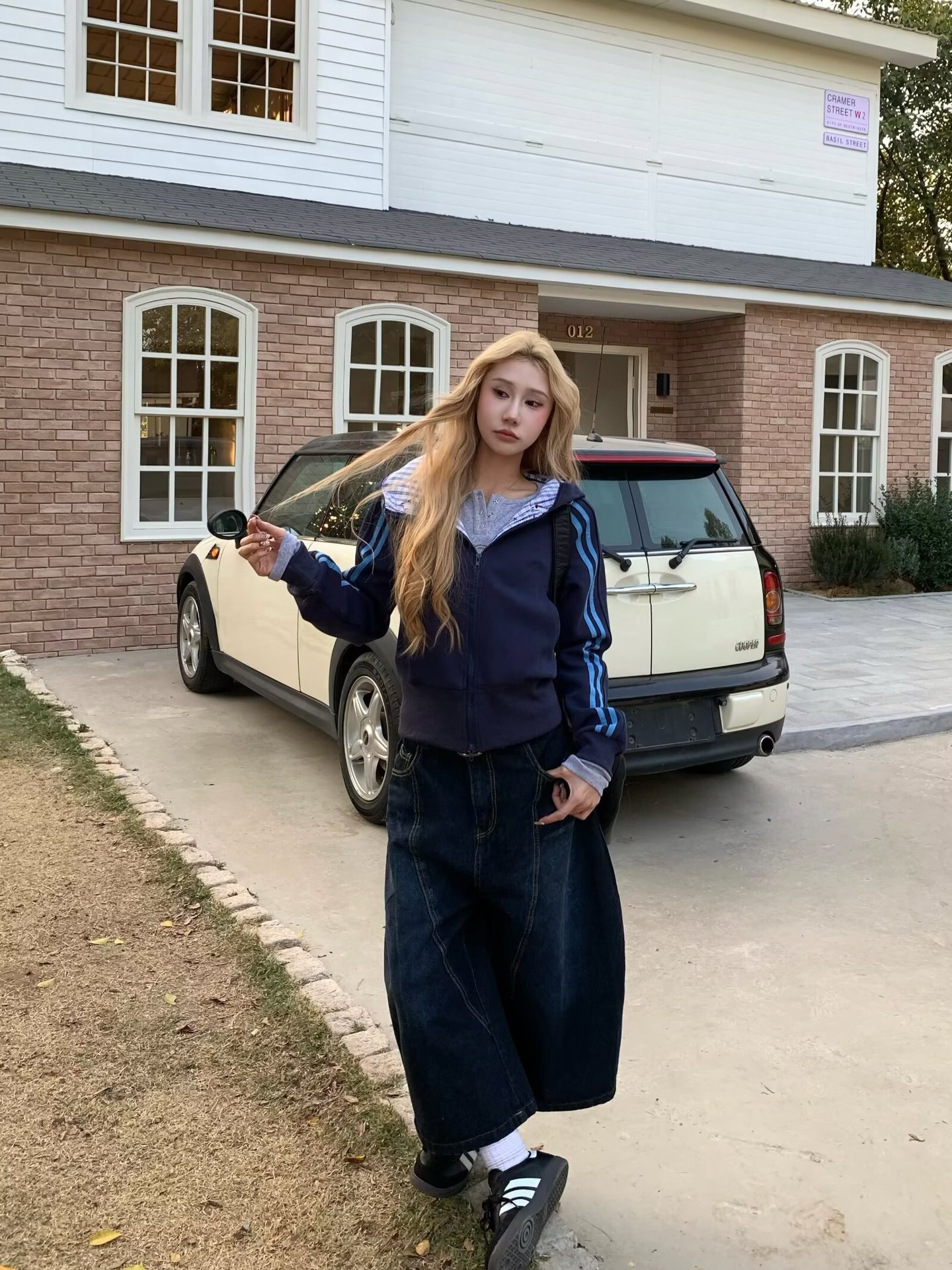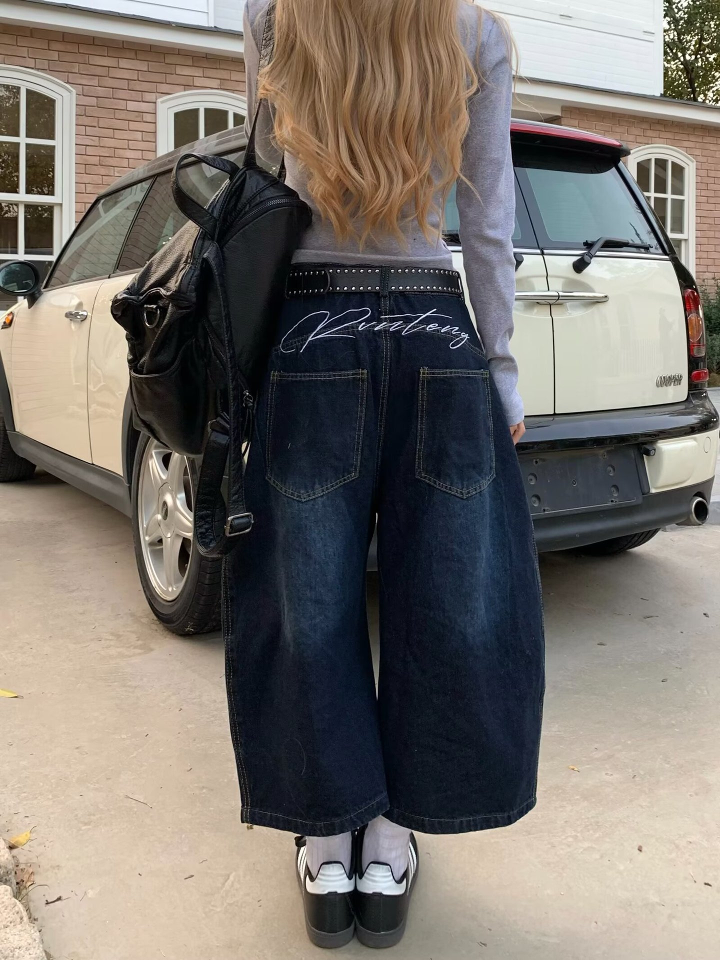 미국 스타일 낙서 높은 허리 자른 넓은 다리 청바지 여성 여름 디자인 Ins 유행 느슨한 캐주얼 스트레이트 바지스토어 가기