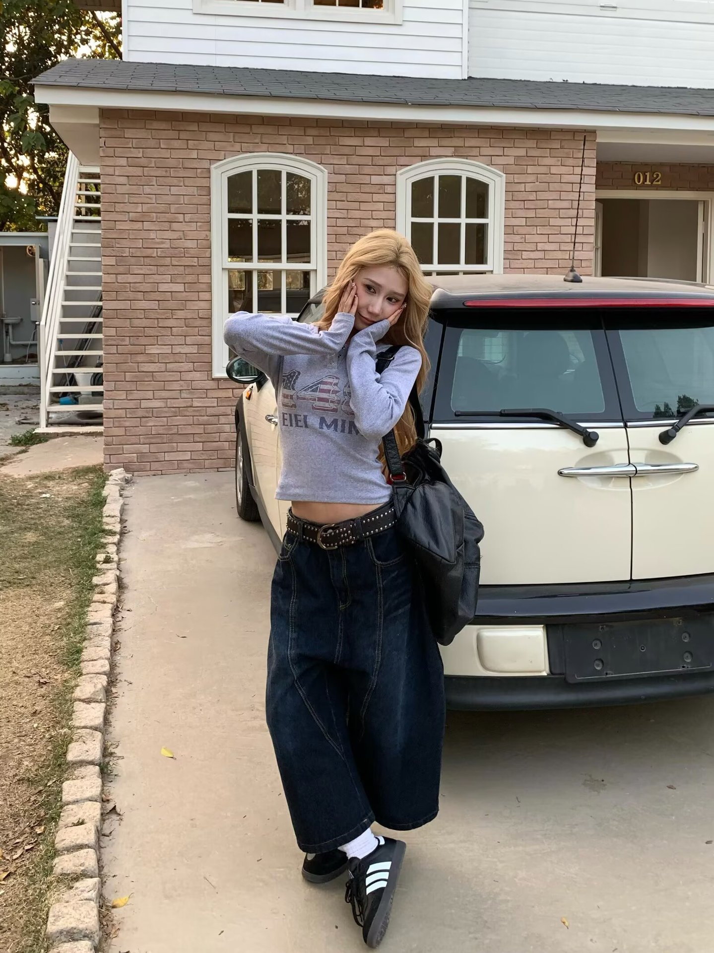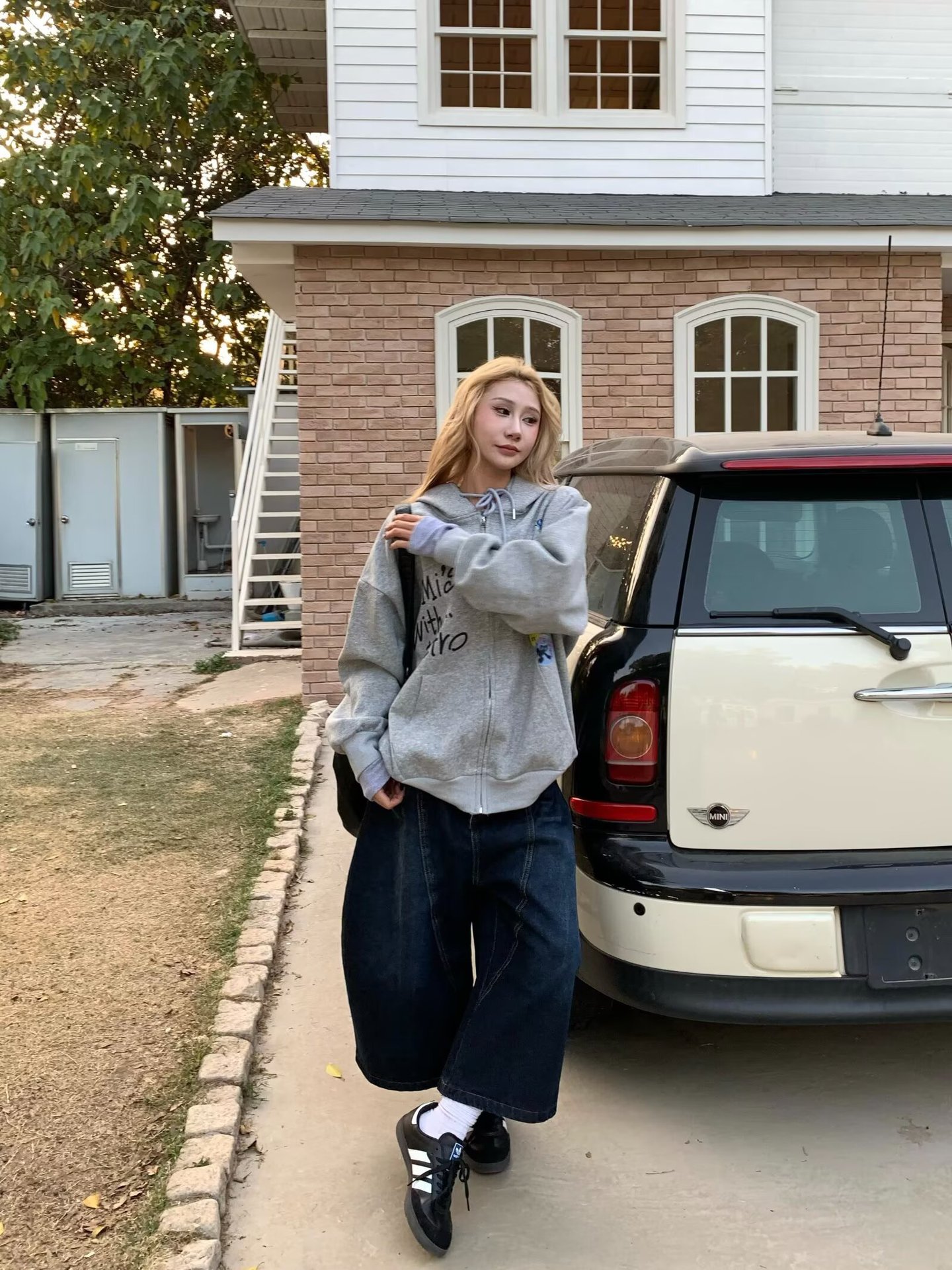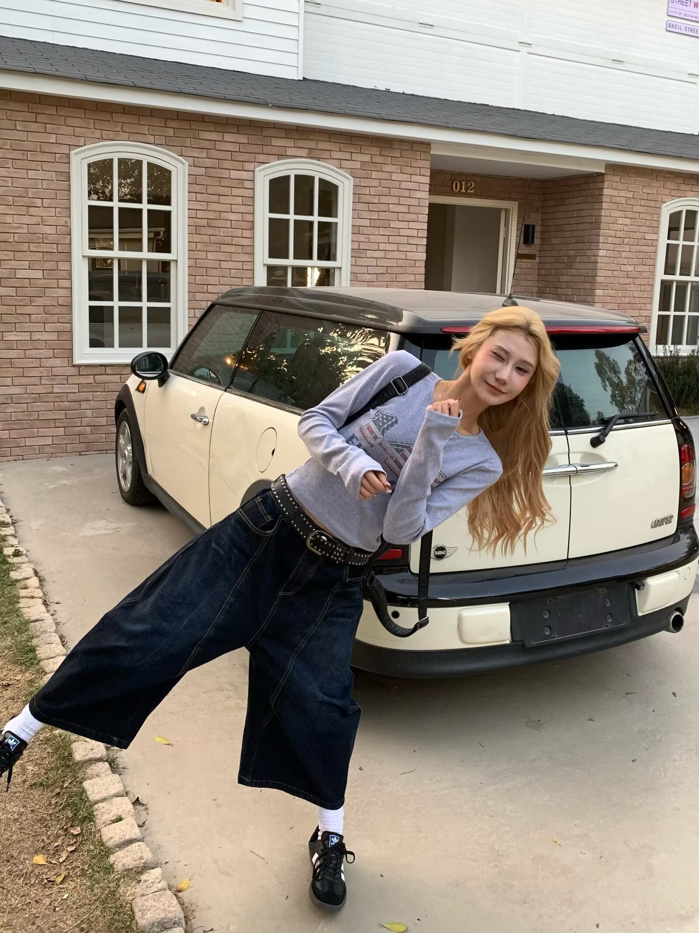 미국 스타일 낙서 높은 허리 자른 넓은 다리 청바지 여성 여름 디자인 Ins 유행 느슨한 캐주얼 스트레이트 바지