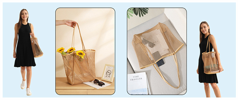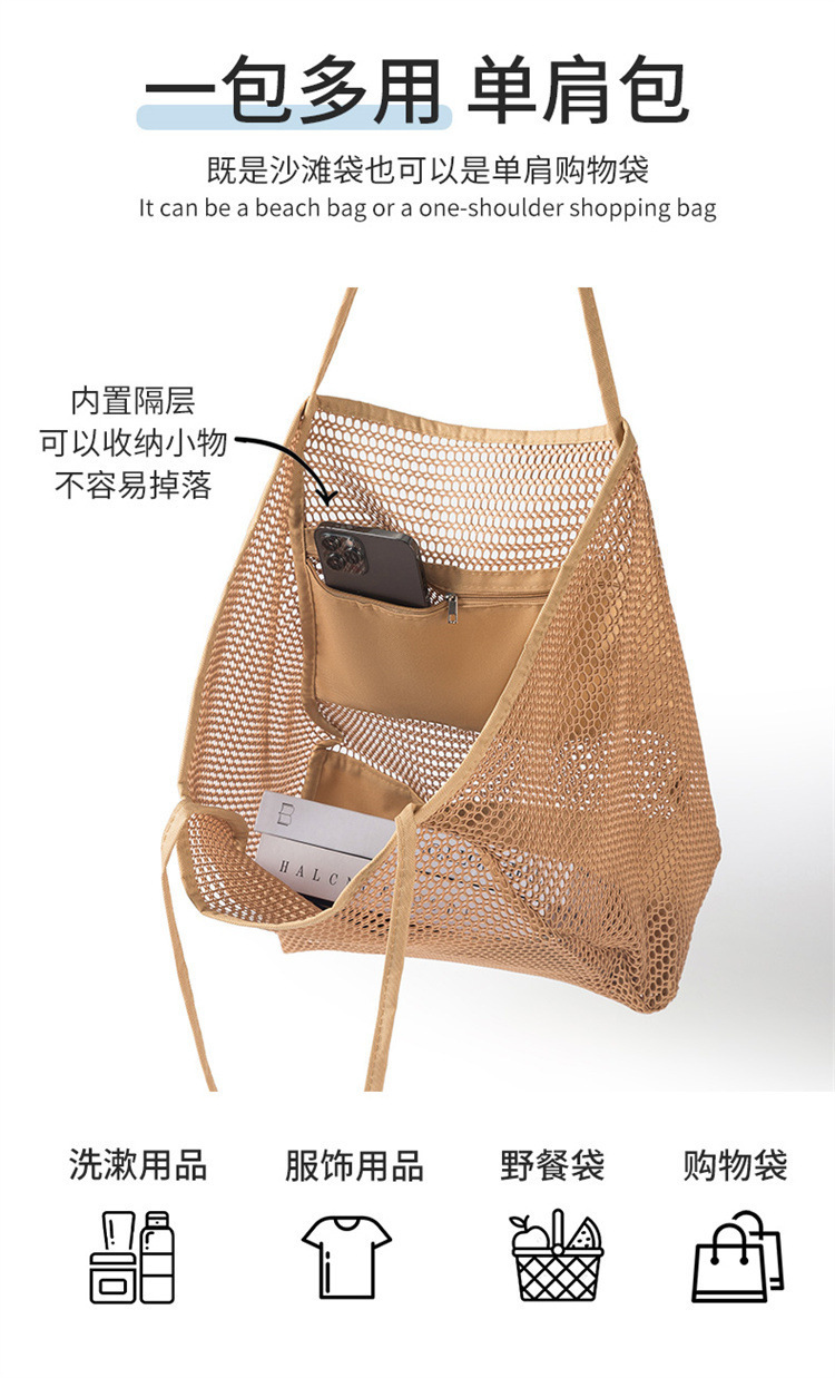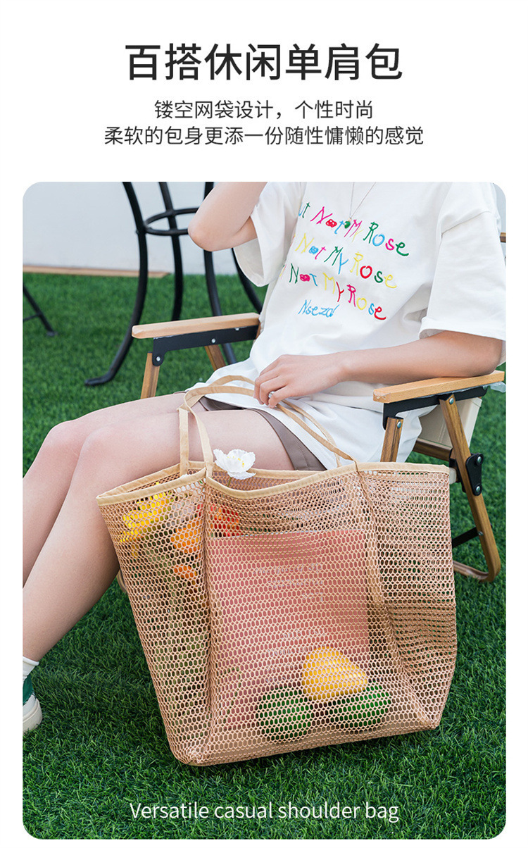 국경 간 여름 야외 메쉬 가방 통기성 비치 가방 접는 의류 가방 핸드백 야외 어깨 가방 쇼핑백