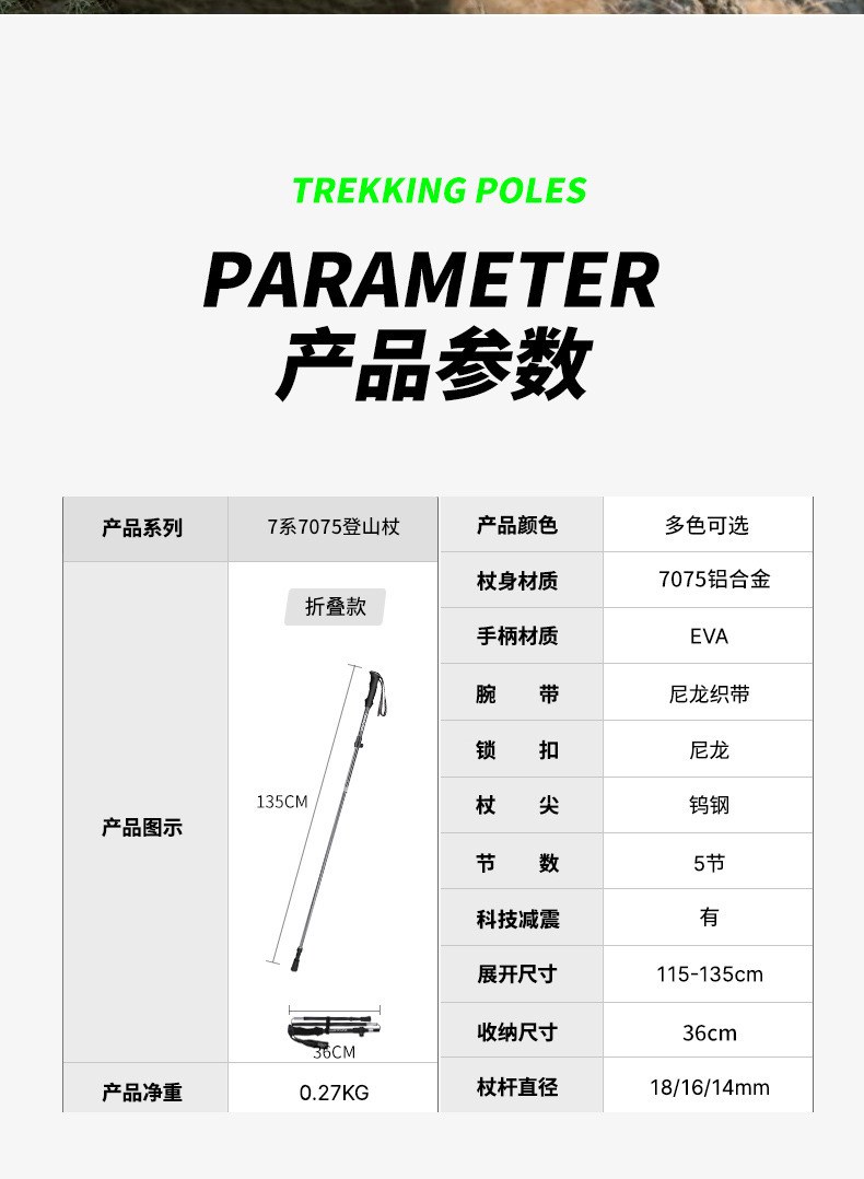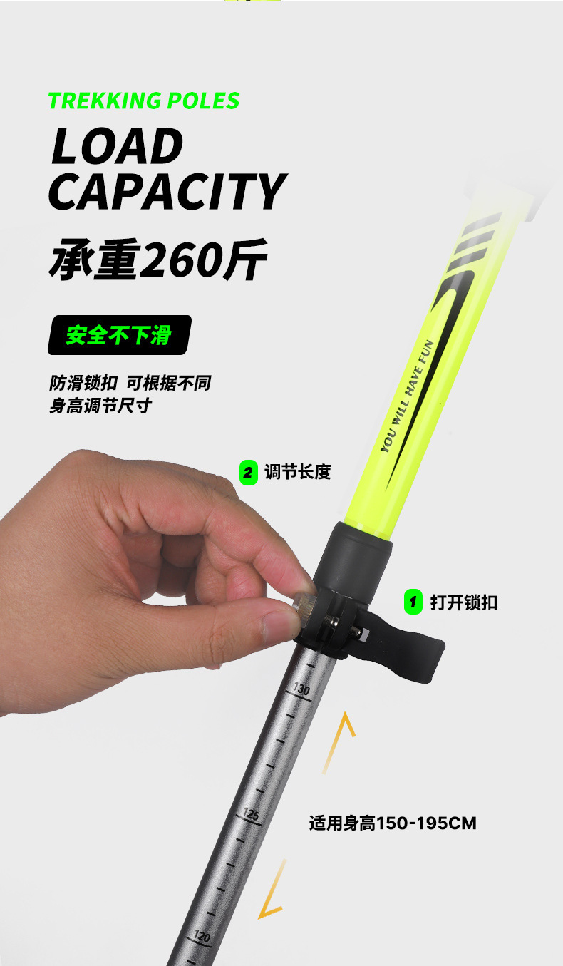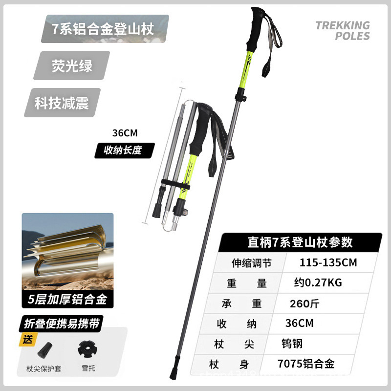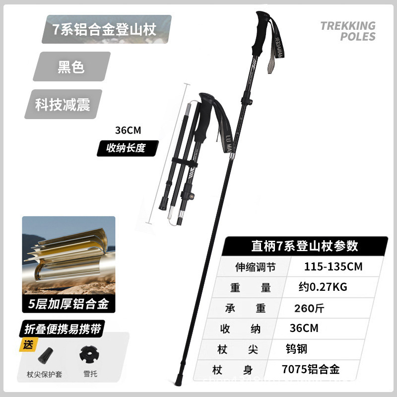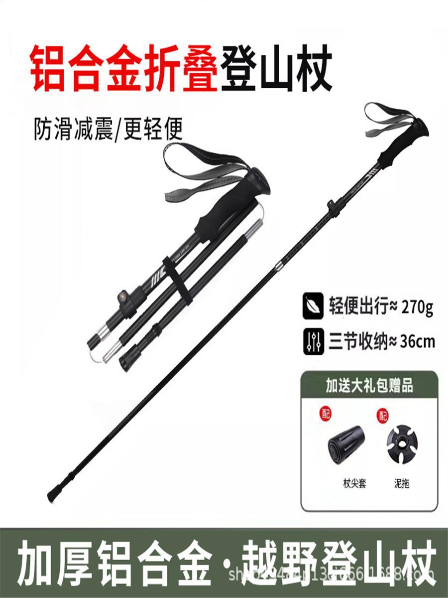 【공장 직판】야외 등산용 지팡이 접이식 미끄럼 방지 지팡이 다기능 하이킹용 접이식