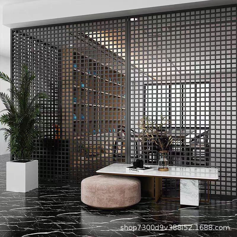 와비사비 스타일 그리드 연철 크로스 그리드 서브 파티션 블랙 메탈 한 단어 스크린 사무실 홈 모던 심플