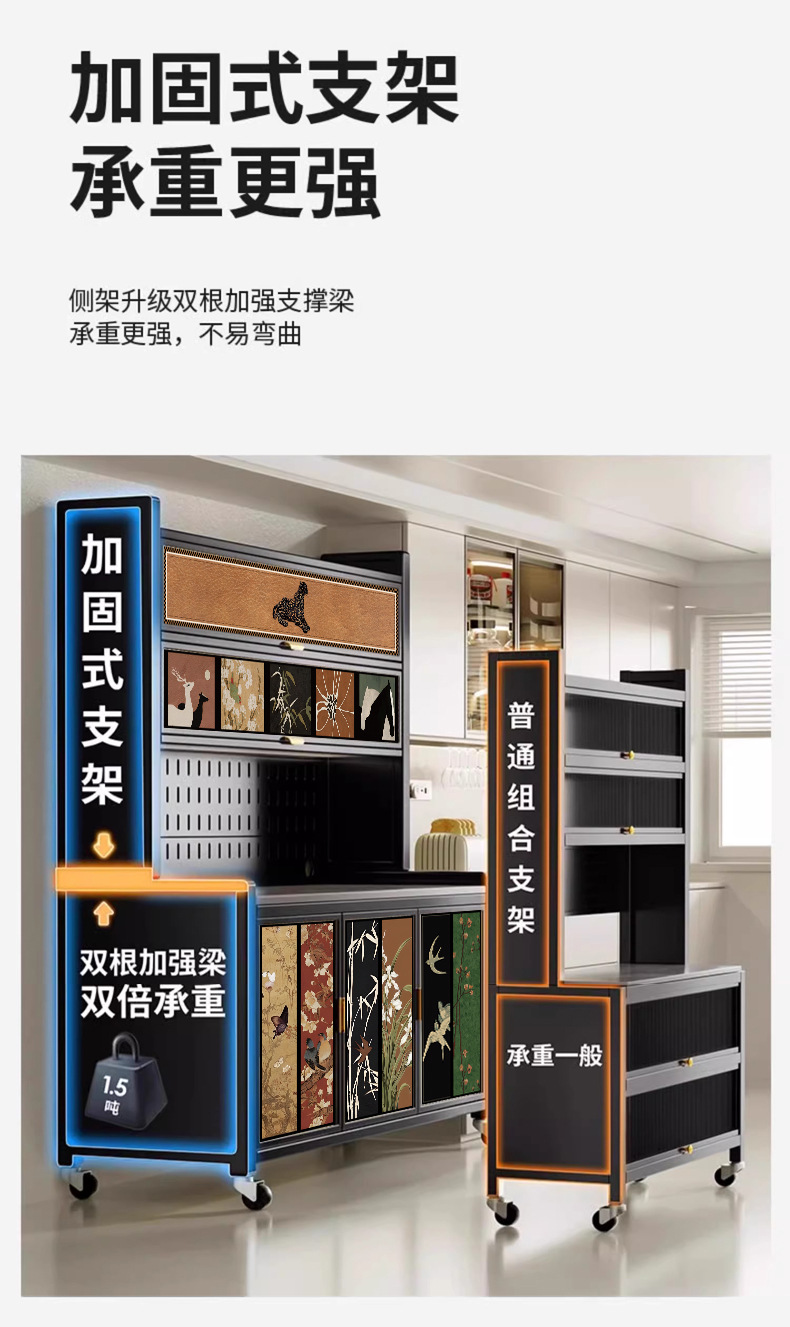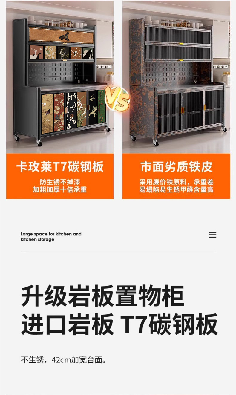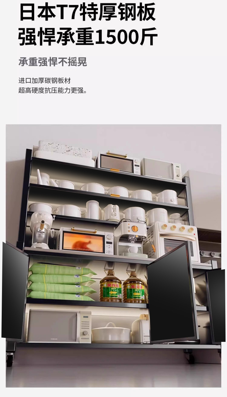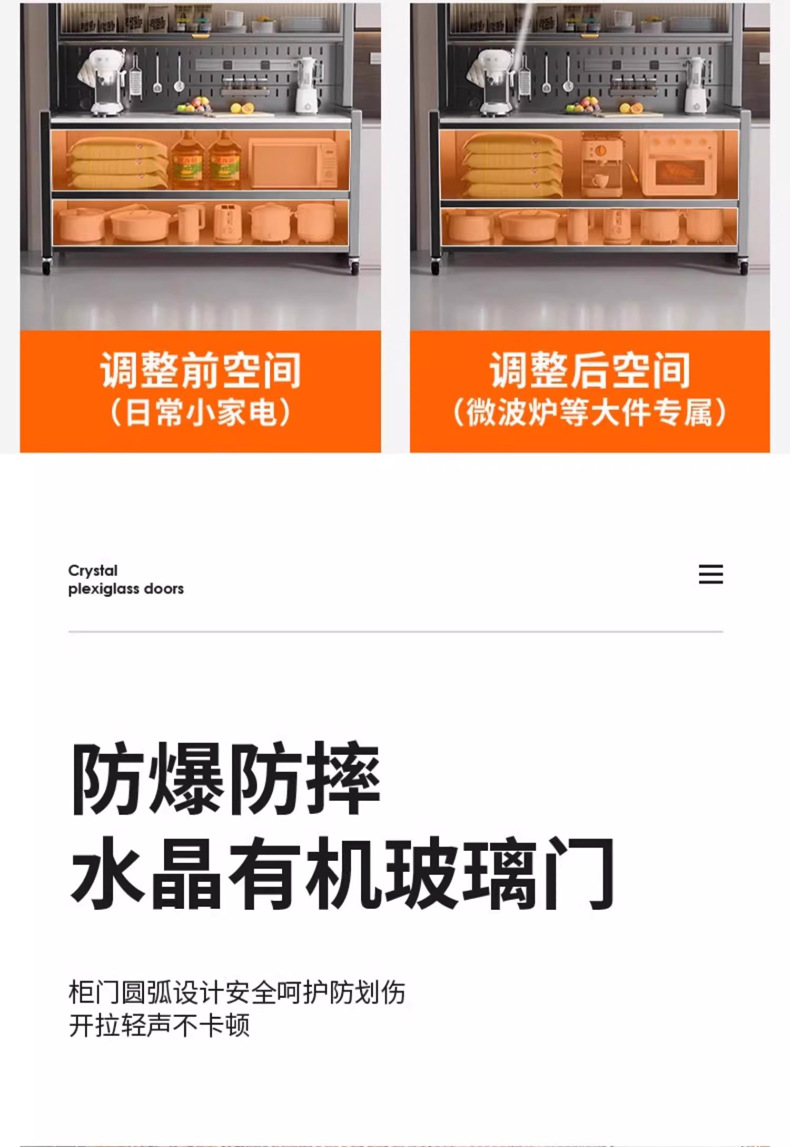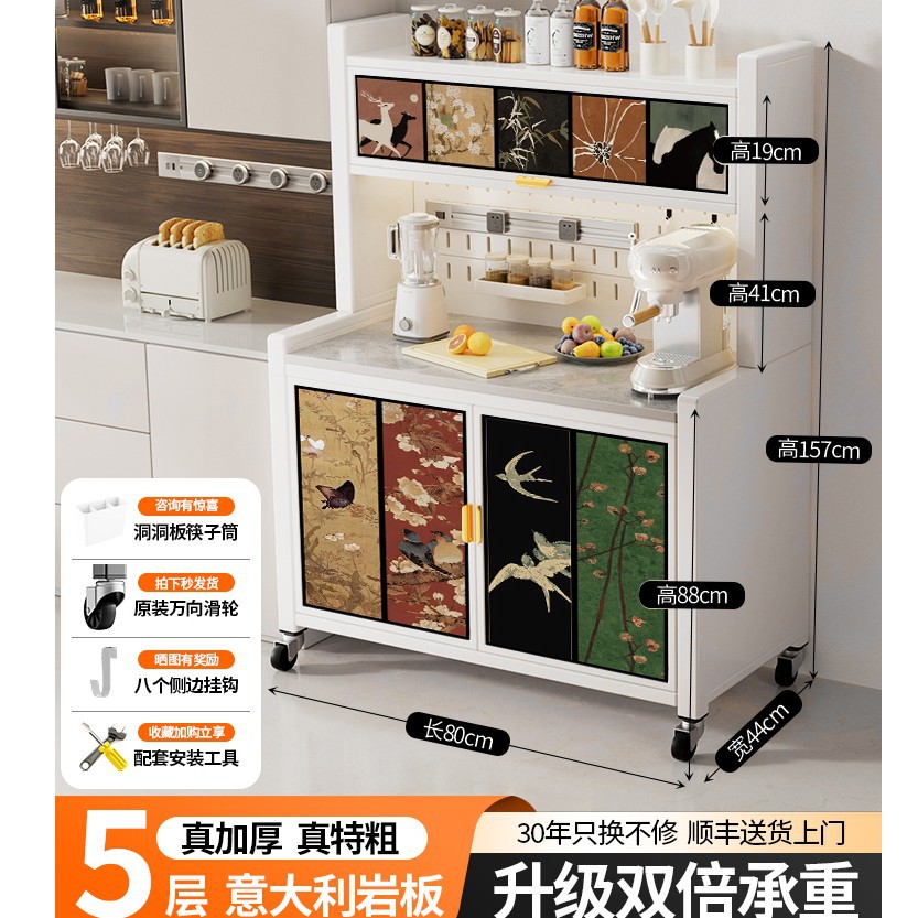 주방 다기능 저장 랙 바닥 다층 전자 레인지 저장 캐비닛 저장 캐비닛 통합 벽 측면 캐비닛스토어 가기