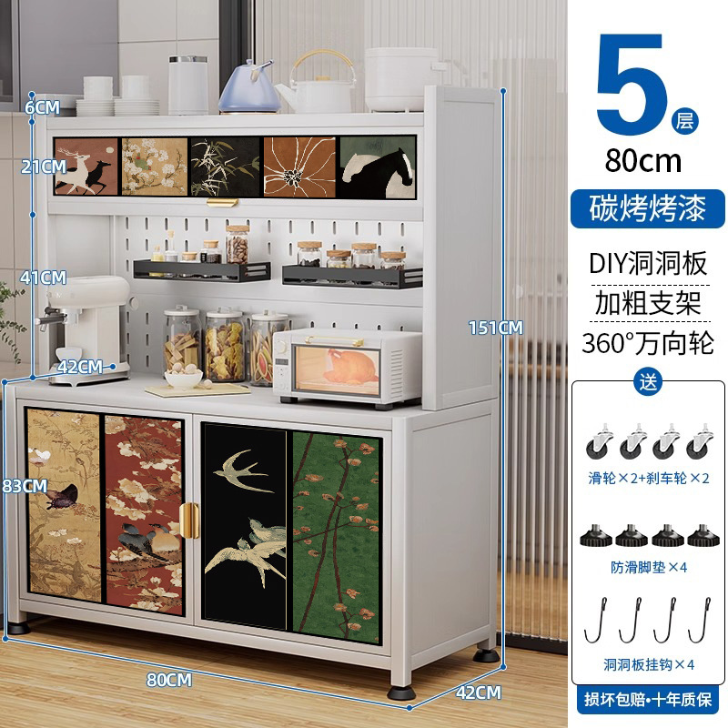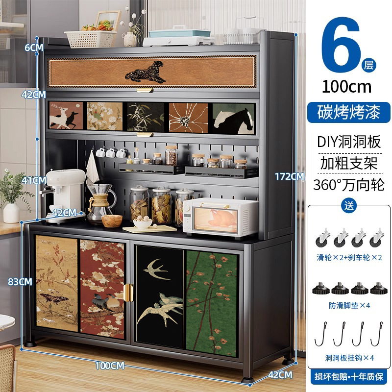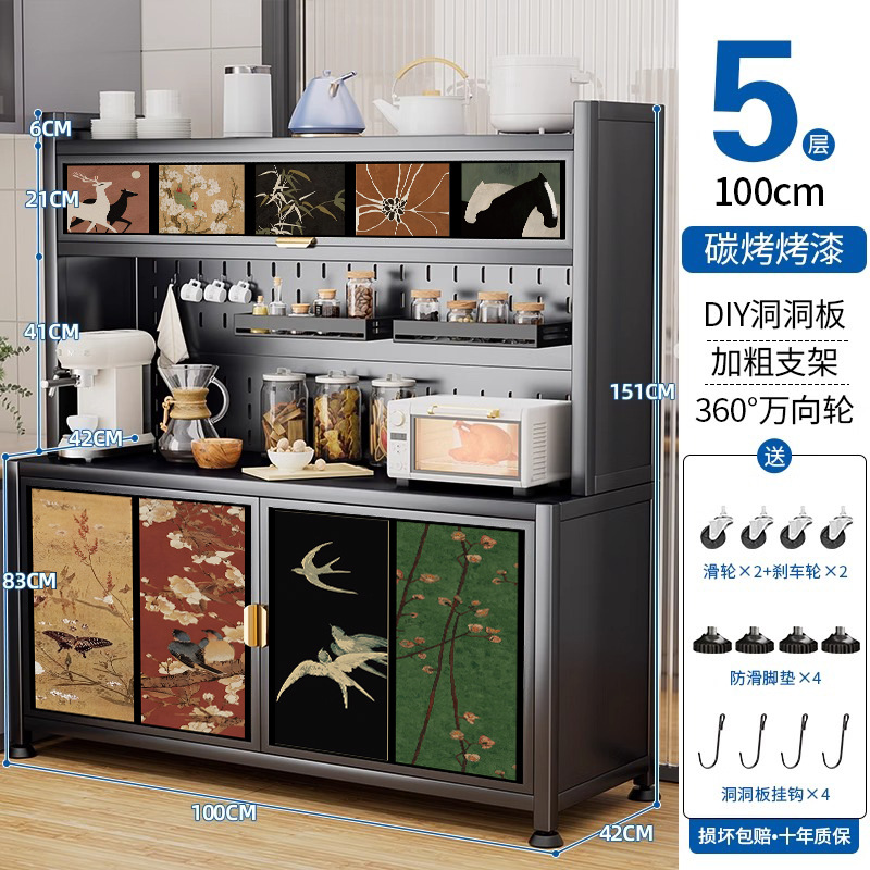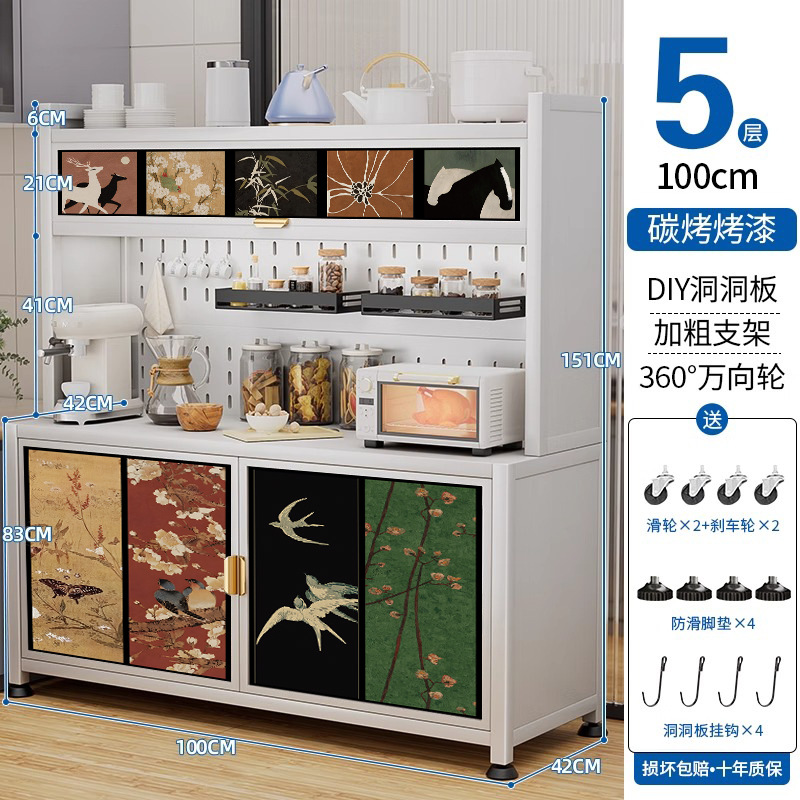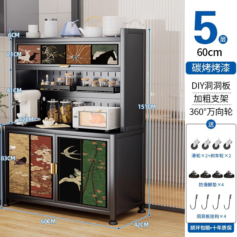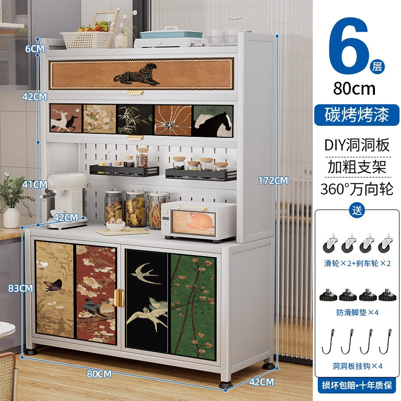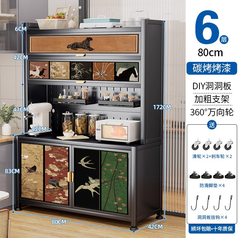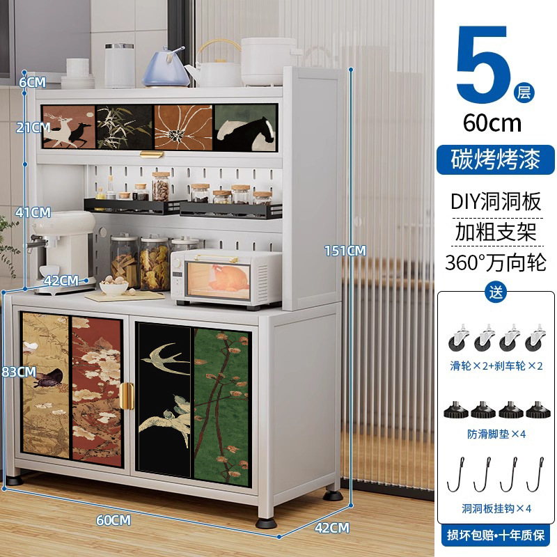 주방 다기능 저장 랙 바닥 다층 전자 레인지 저장 캐비닛 저장 캐비닛 통합 벽 측면 캐비닛