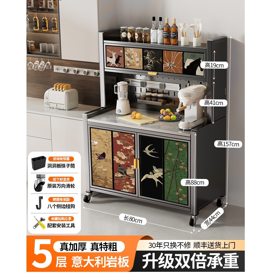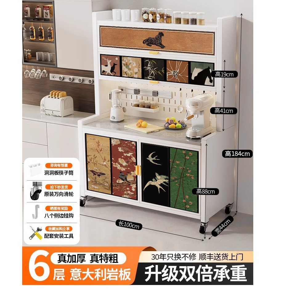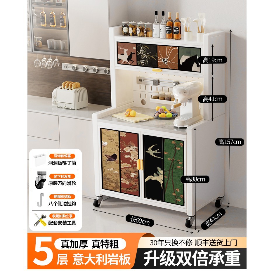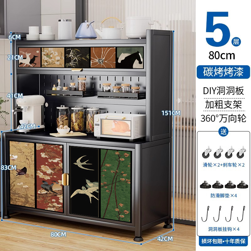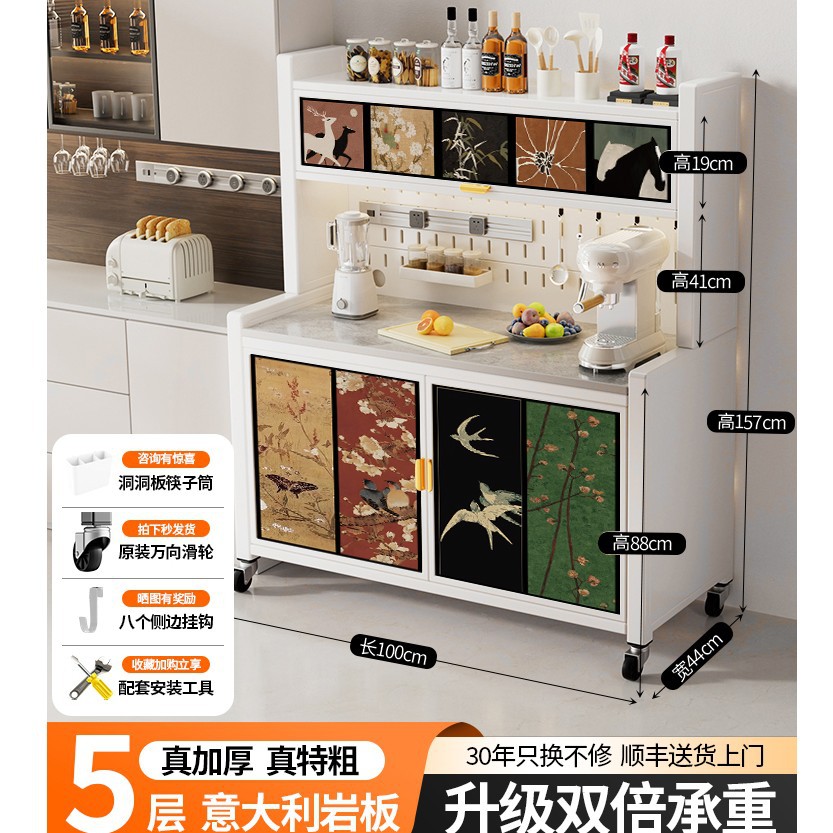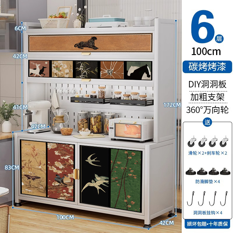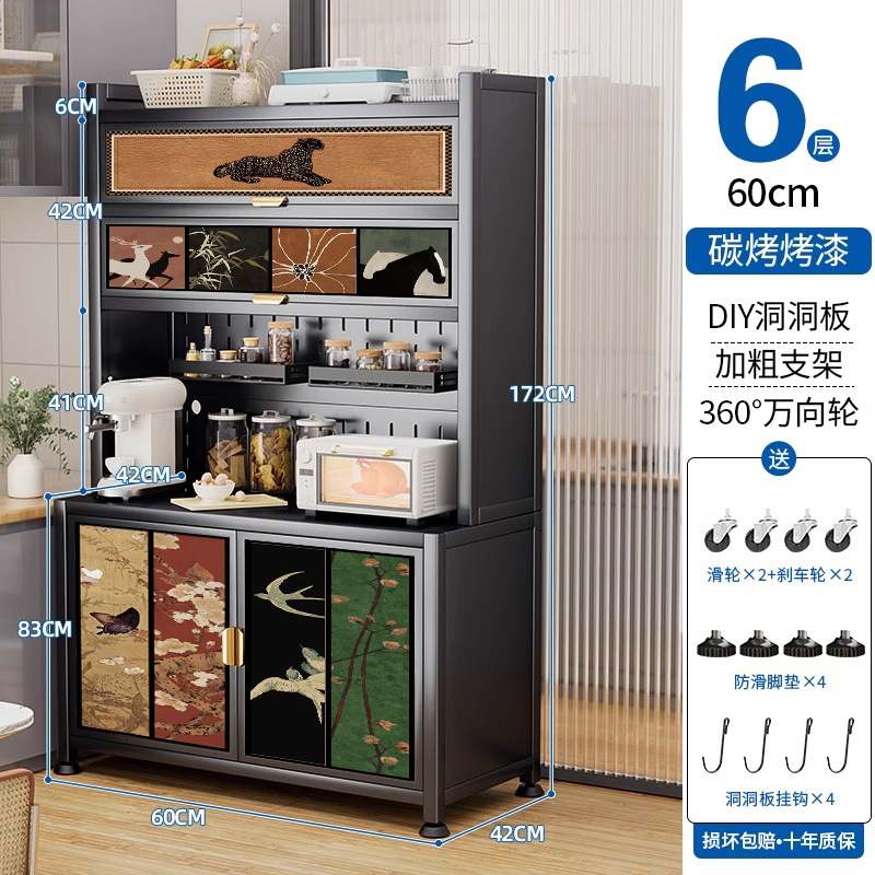 주방 다기능 저장 랙 바닥 다층 전자 레인지 저장 캐비닛 저장 캐비닛 통합 벽 측면 캐비닛