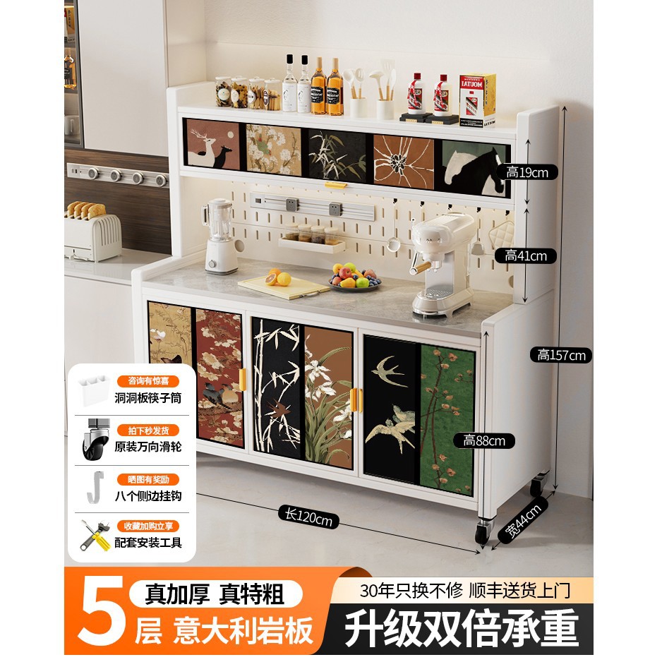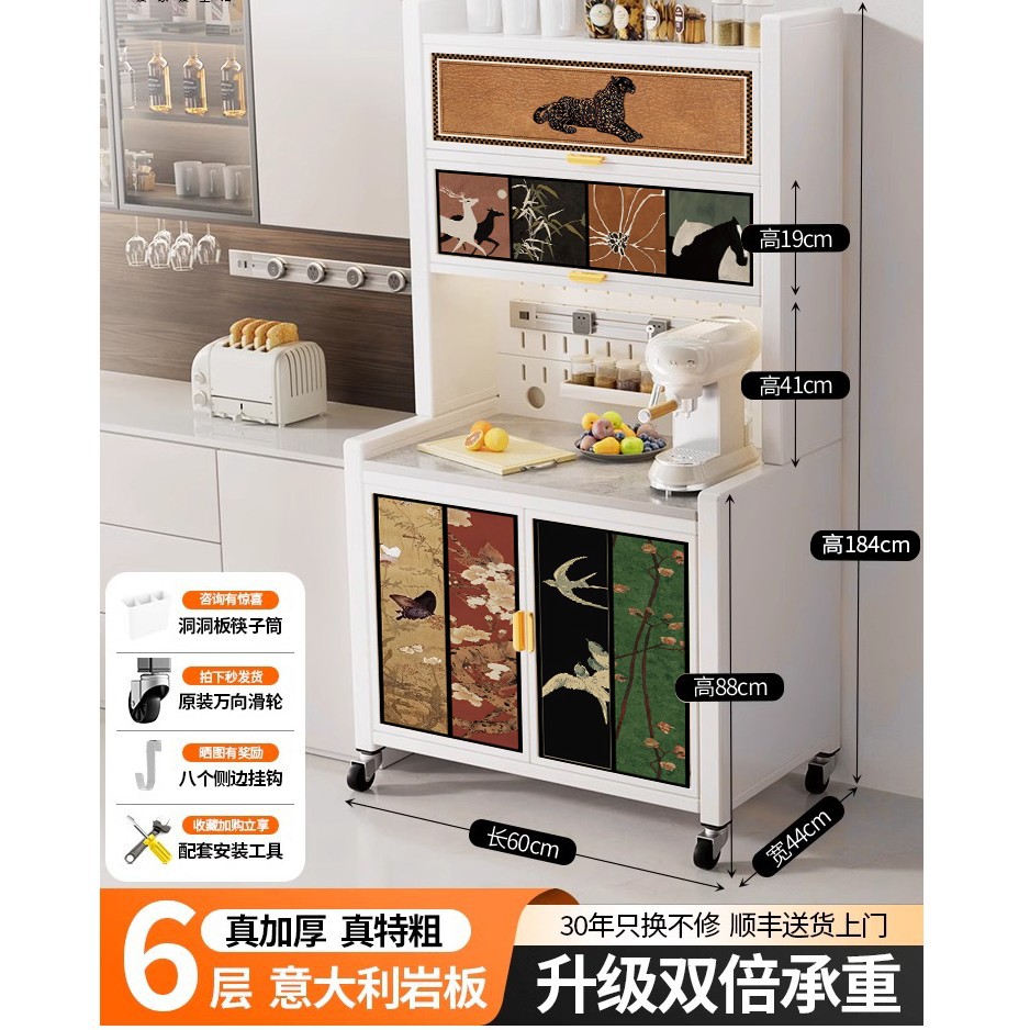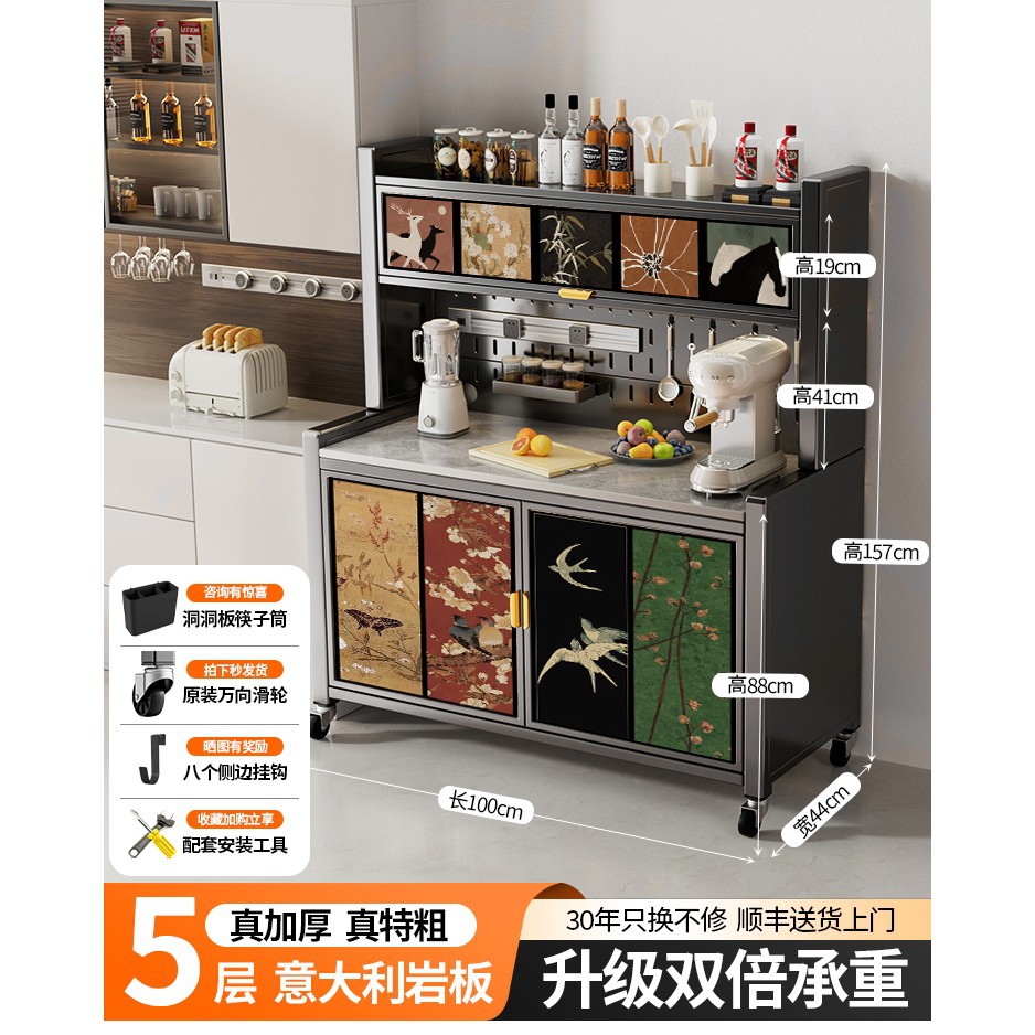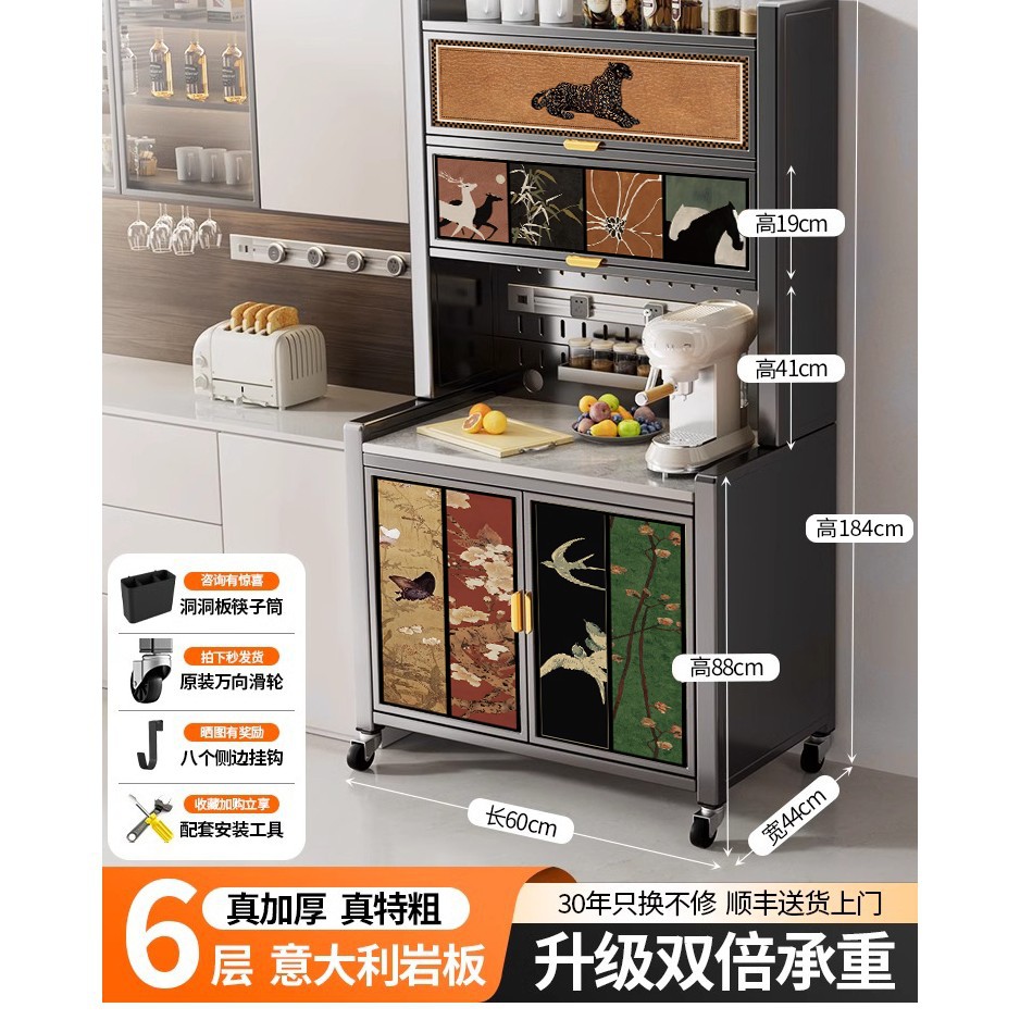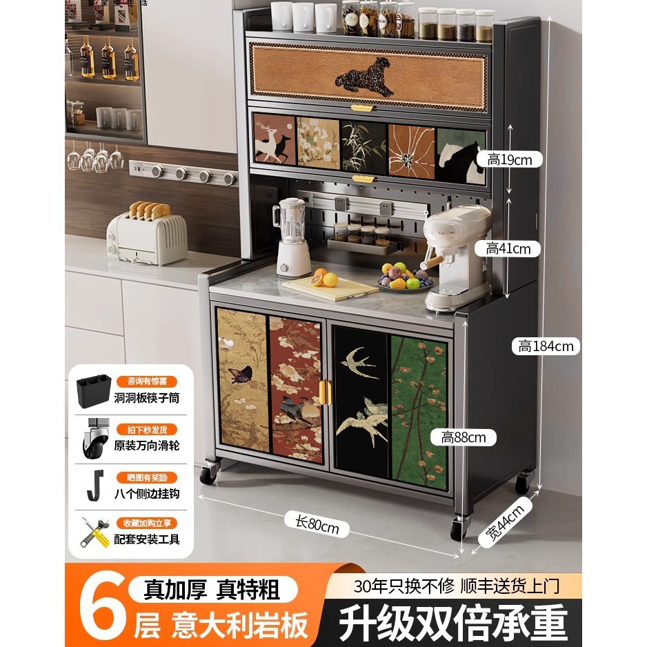 주방 다기능 저장 랙 바닥 다층 전자 레인지 저장 캐비닛 저장 캐비닛 통합 벽 측면 캐비닛