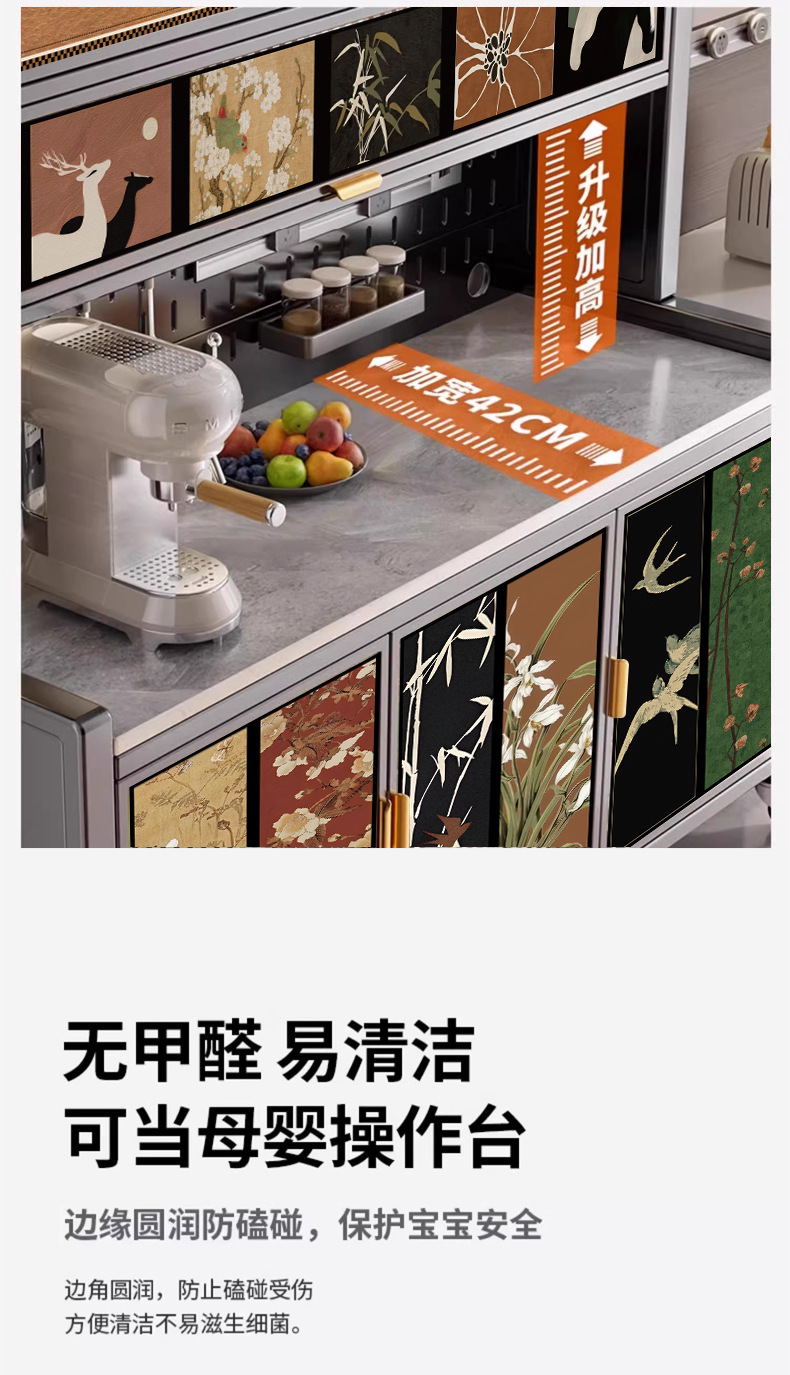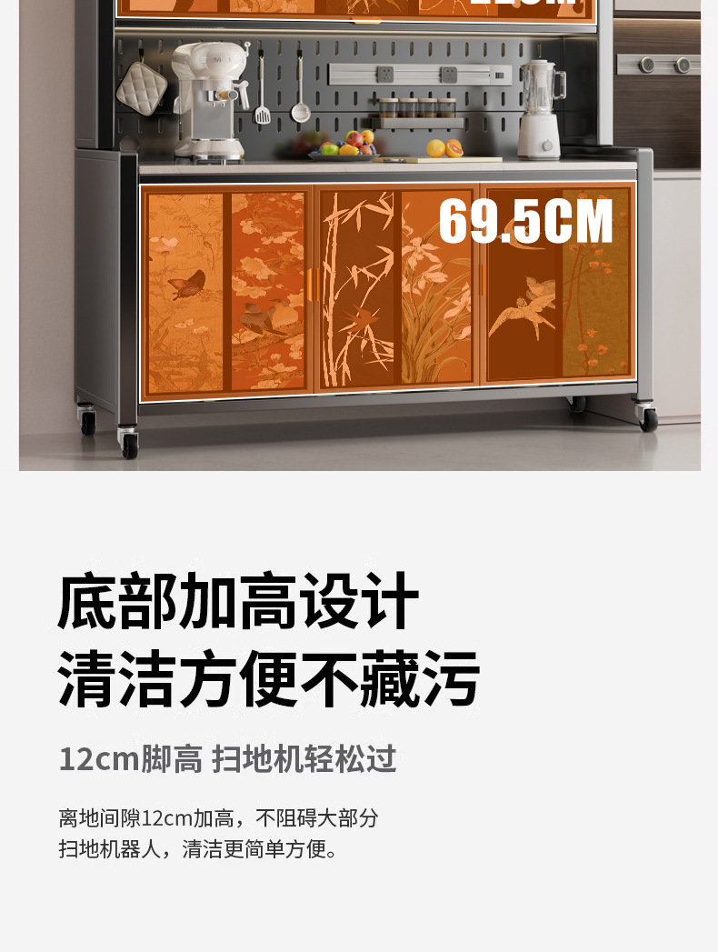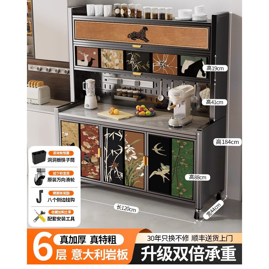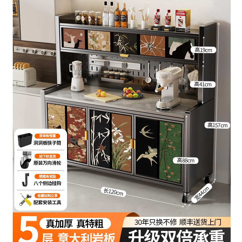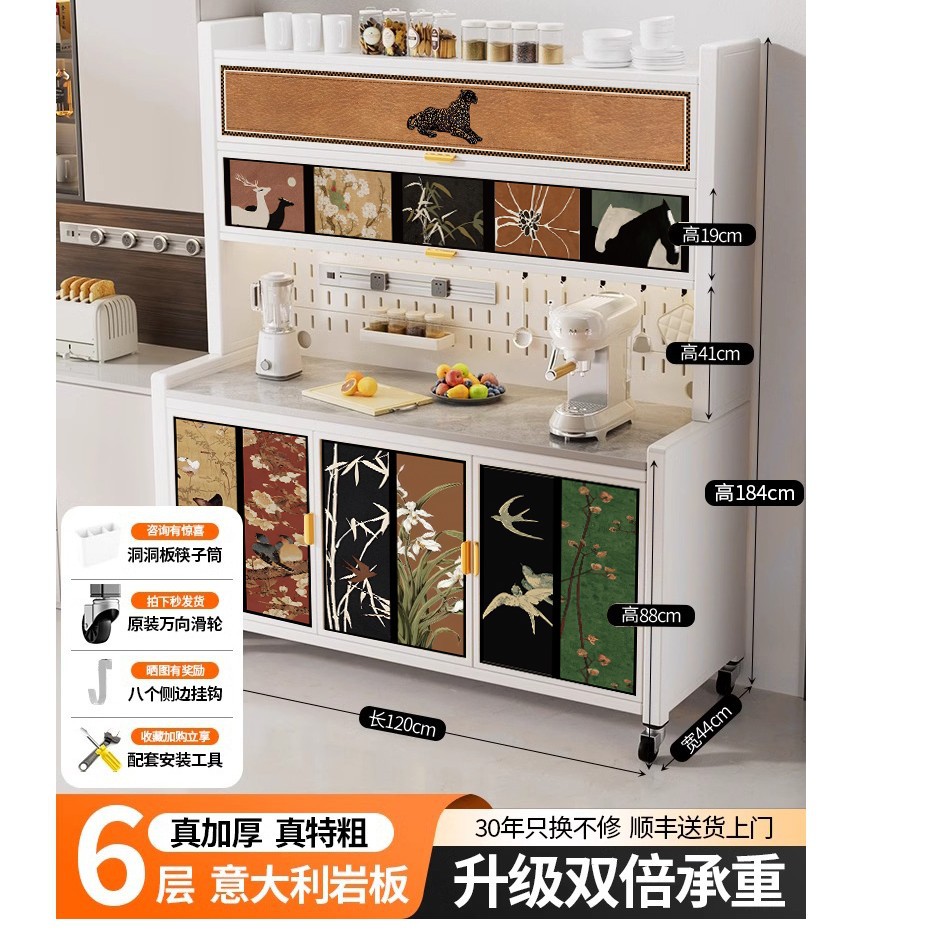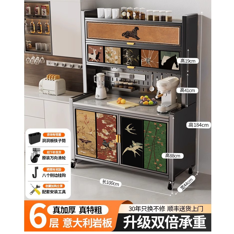 주방 다기능 저장 랙 바닥 다층 전자 레인지 저장 캐비닛 저장 캐비닛 통합 벽 측면 캐비닛