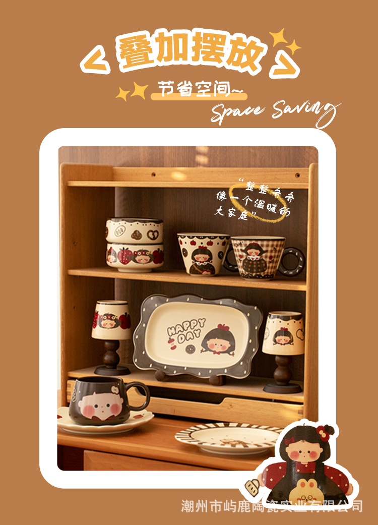 빈티지 소녀 세라믹 식기 세트 가정용 쌀 그릇 접시 집들이 결혼식 선물 여성을위한 특별한 생일 선물