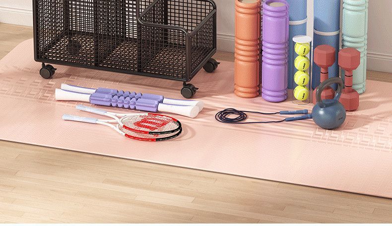 요가 매트 보관 바구니, 가정용 스포츠 및 피트니스 장비 보관 랙, 슬롯 랙, 가정용 배드민턴 라켓 보관 랙스토어 가기