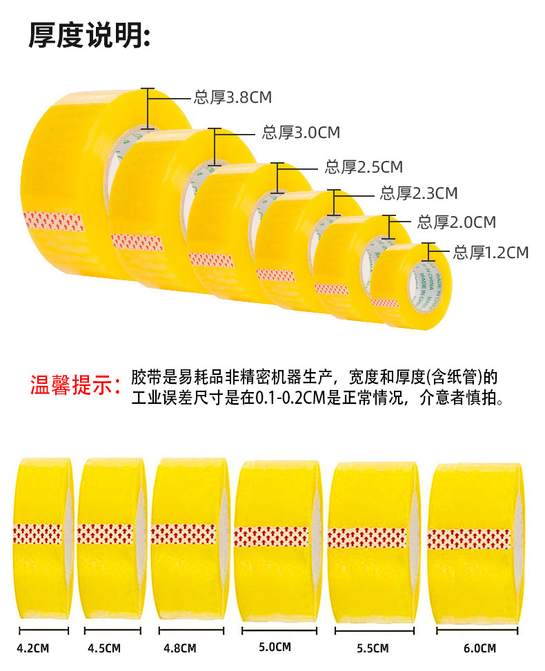 • 투명 노란색, 폭 6.0*2.0 두께*110(60롤의 전체 상자)