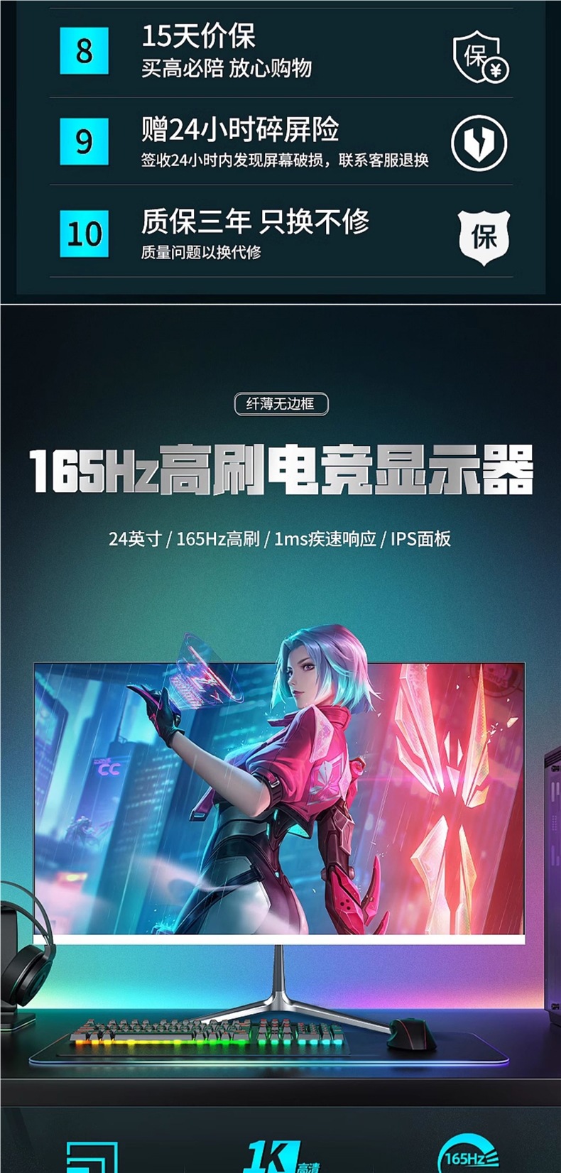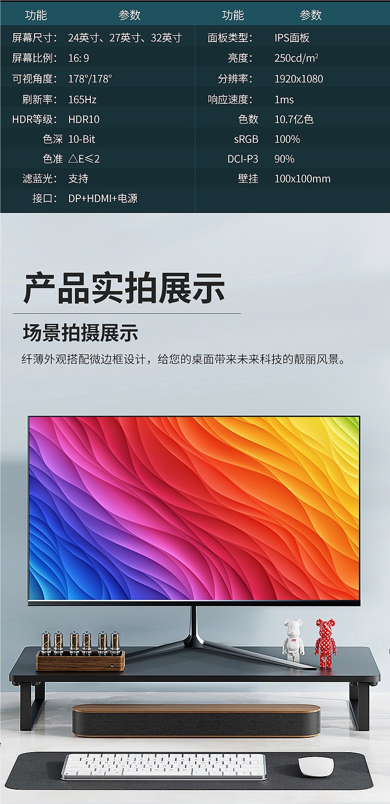 • 27inch 블랙 다이렉트 페이스(2k165hz) 베젤리스 - 공식 표준