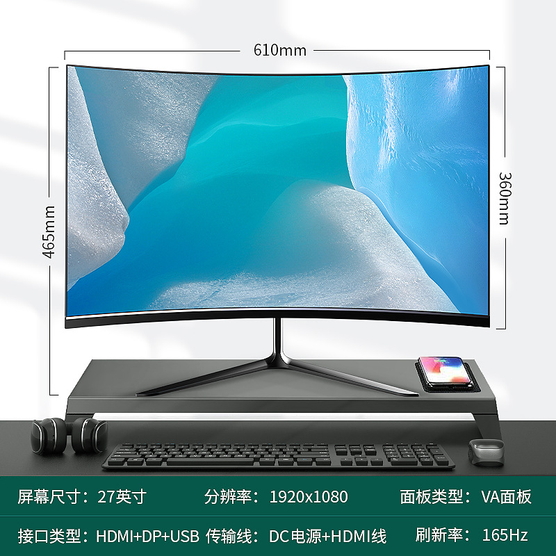 • 27inch 검정색 곡면(1k165hz) 프레임리스 - 공식 표준