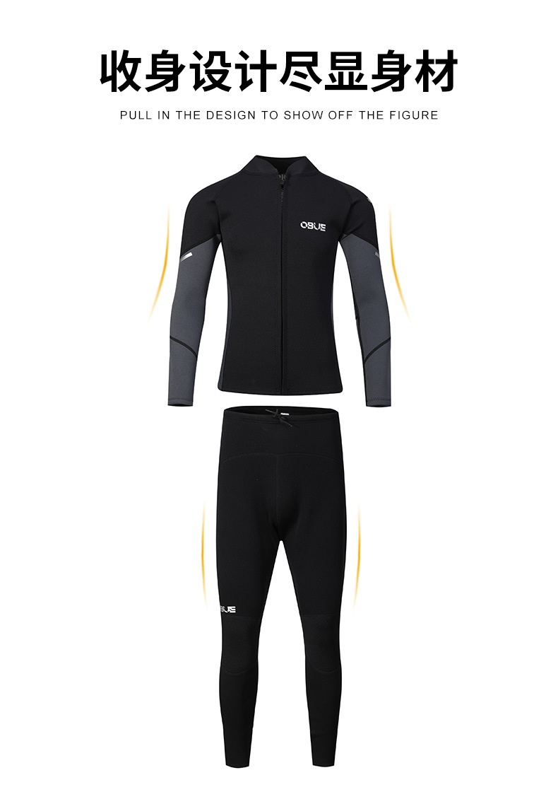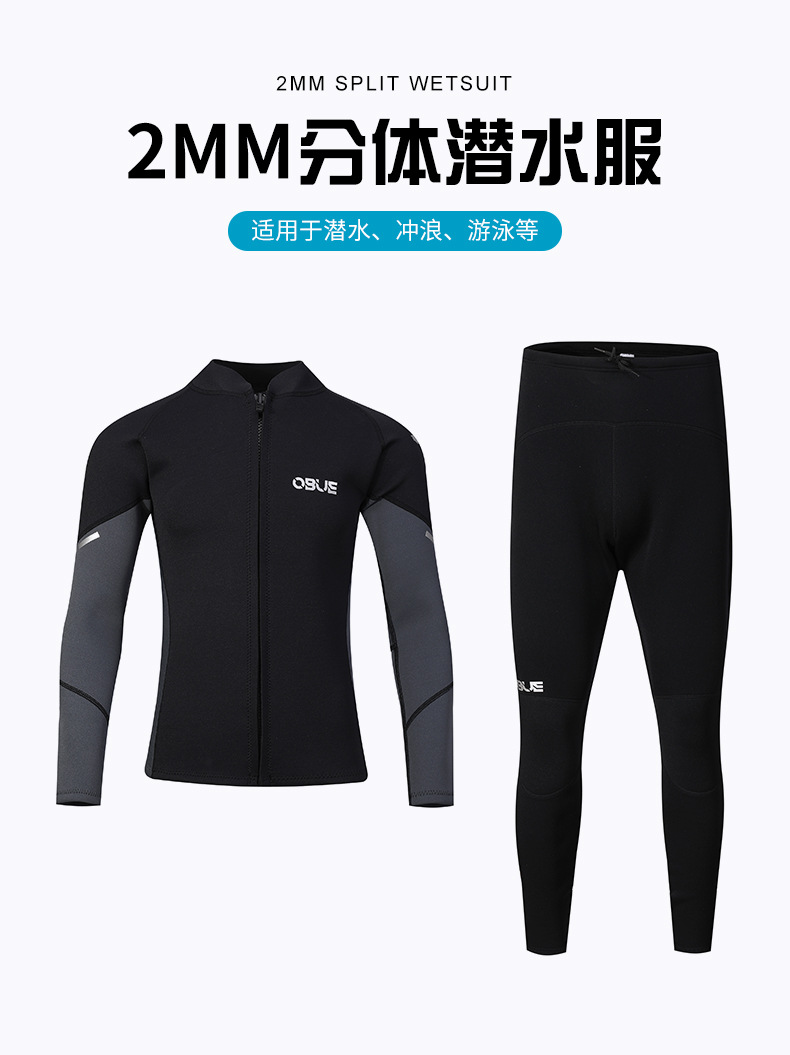 2mm 다이빙 세트 OBUE 분할 다이빙 세트 남성과 여성의 젖은 옷 긴 소매 바지 냉장 따뜻한 태양 방지 서퍼 세트