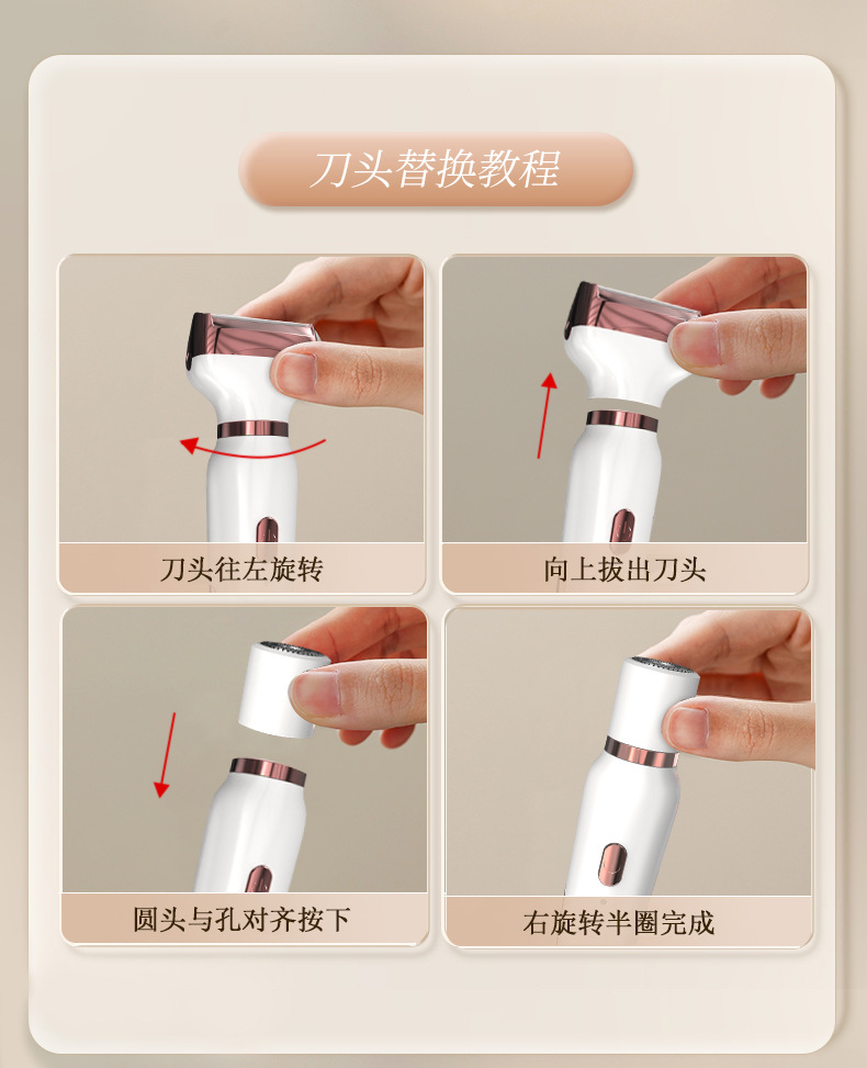 여성의 은밀한 부위를 위한 3-in-1 크로스보더 면도기, 눈썹 트리머, 코털 트리머, USB 전기 면도 및 제모기