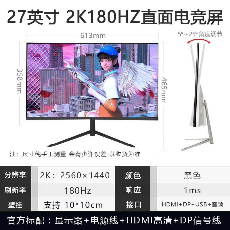 • 27inch 프레임리스 스트레이트 페이스 블랙 2K180HZ e-스포츠 모델 동키콩-공식 표준 SF Express 무료 배송