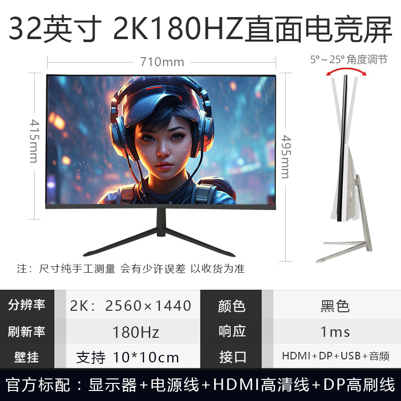 • 32inch 프레임리스 스트레이트 페이스 블랙 2K180HZ e-스포츠 모델 동키콩-공식 표준 SF Express 무료 배송