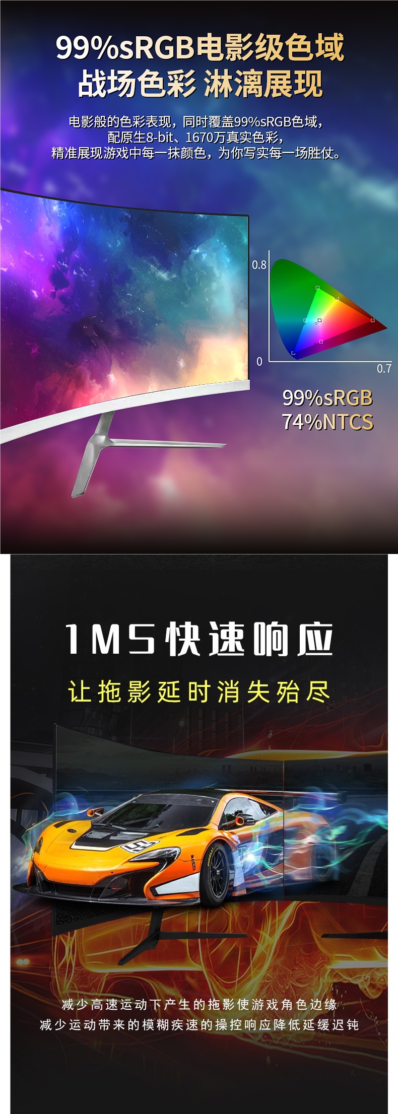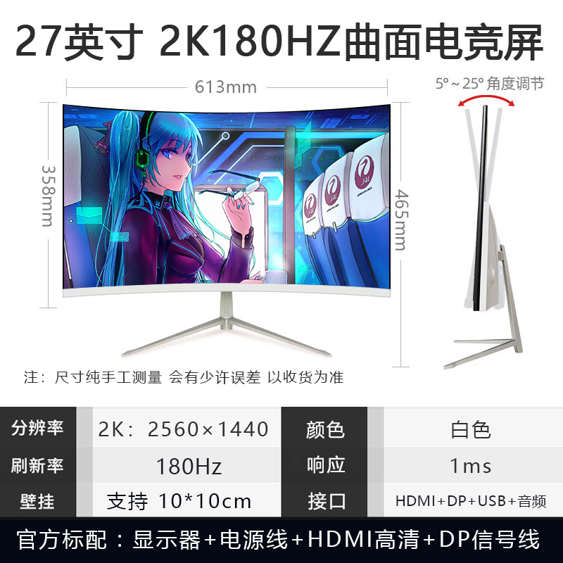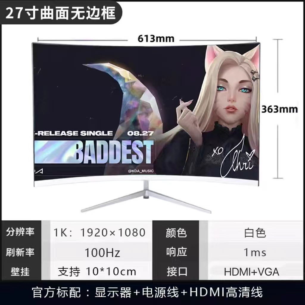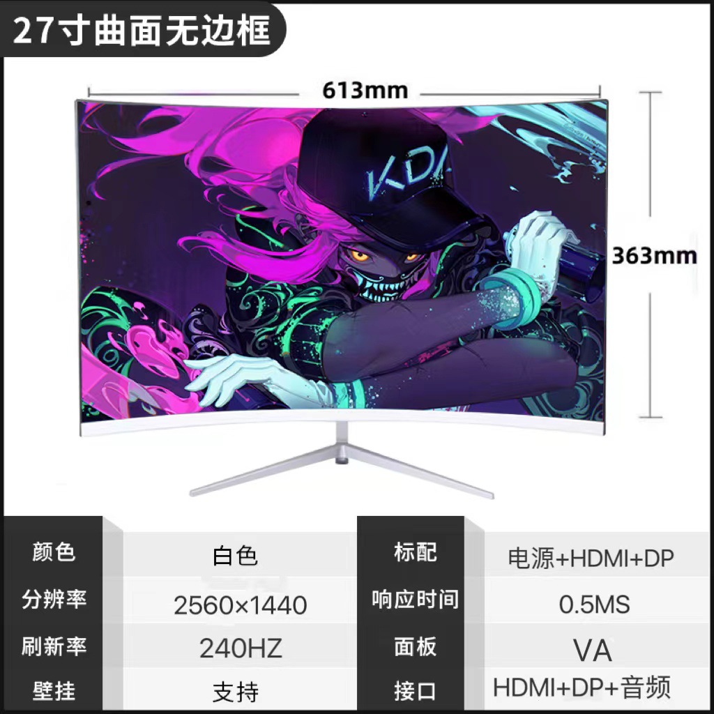 • 27inch 프레임리스 곡선형 화이트 2K180HZ e-스포츠 모델 동키콩-공식 표준 SF Express 무료 배송