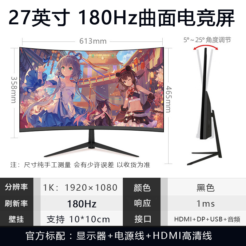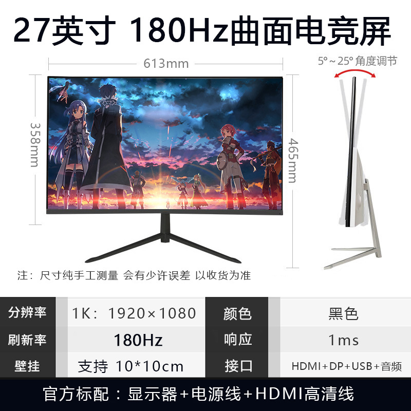 • 27inch 프레임리스 곡선 검정색 1K180HZ 업그레이드 모델 - 공식 표준 SF Express 무료 배송
