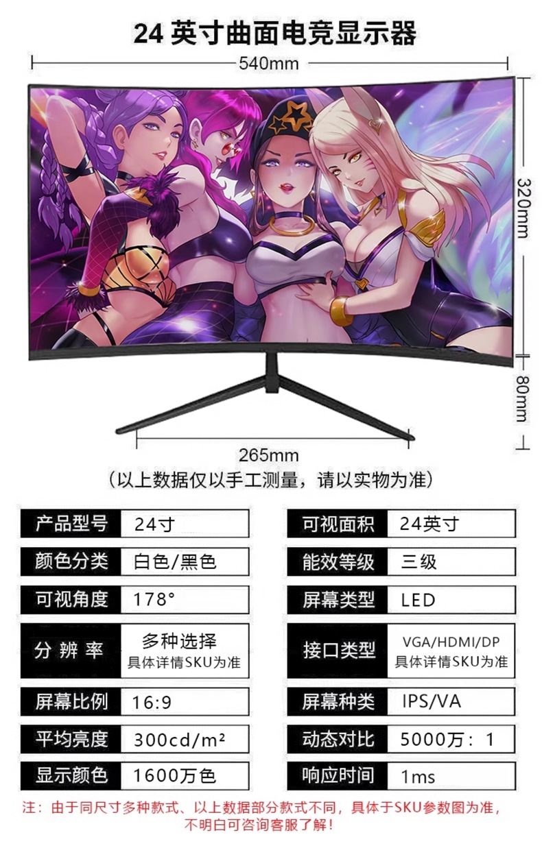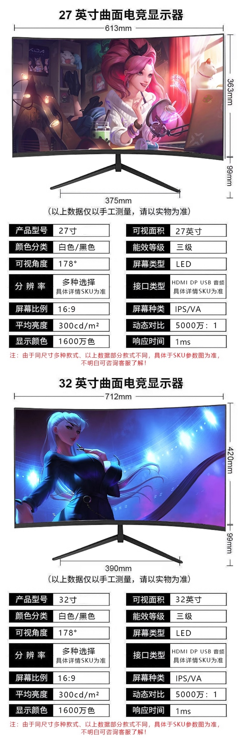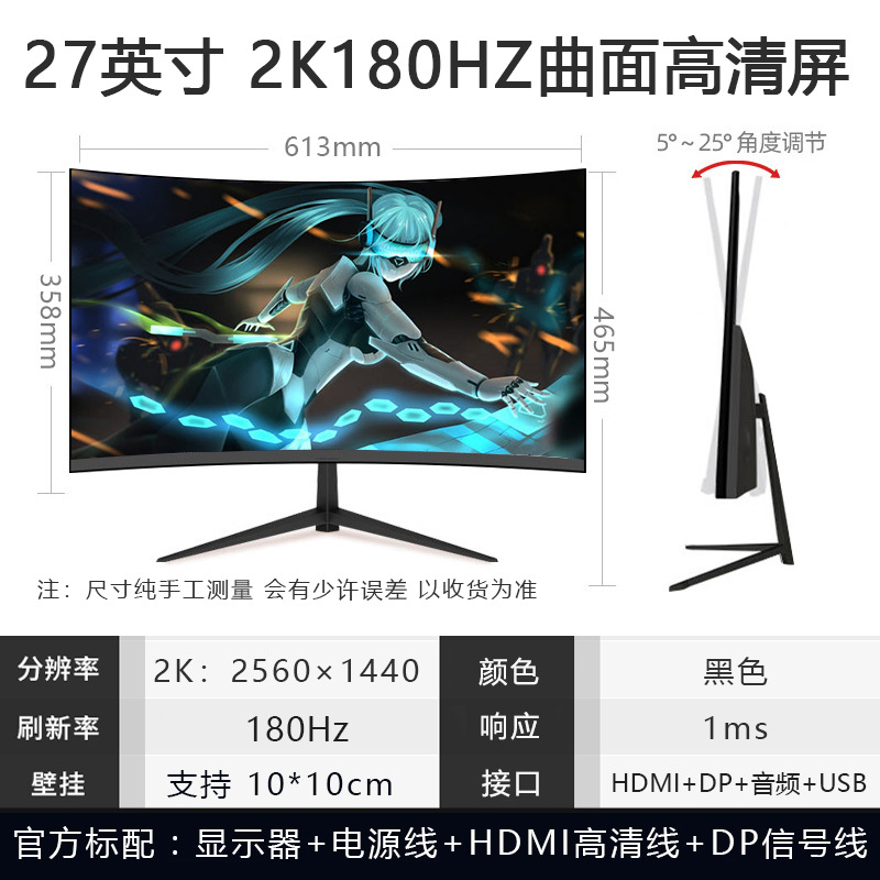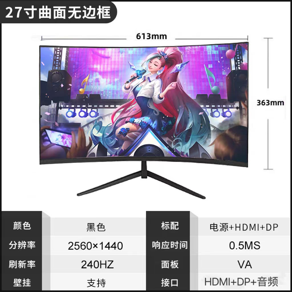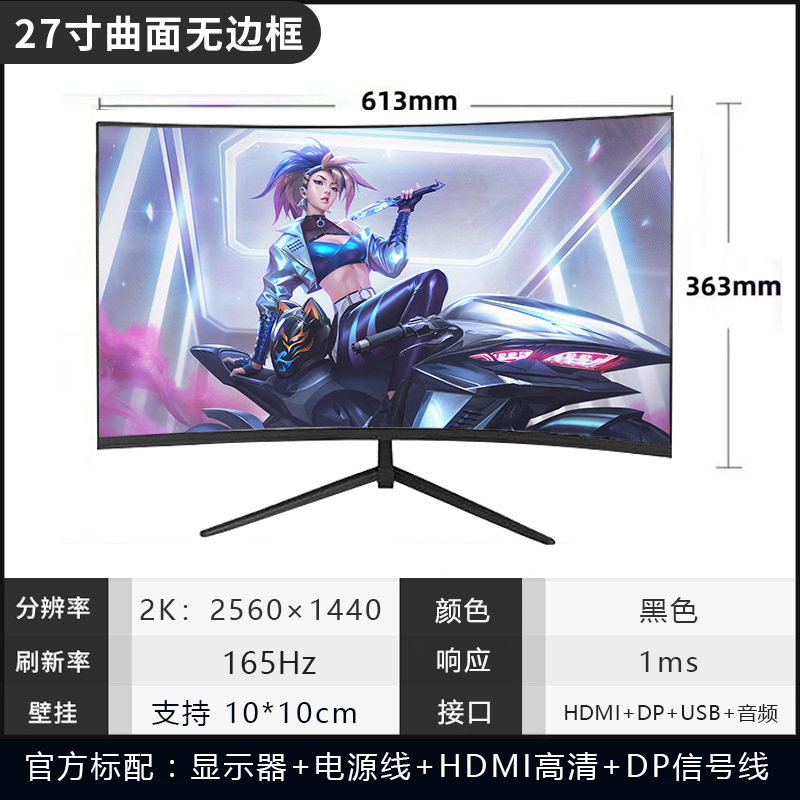 • 27inch 프레임리스 곡선 검정색 2K165HZ e-스포츠 모델 동키콩-공식 표준 SF Express 무료 배송
