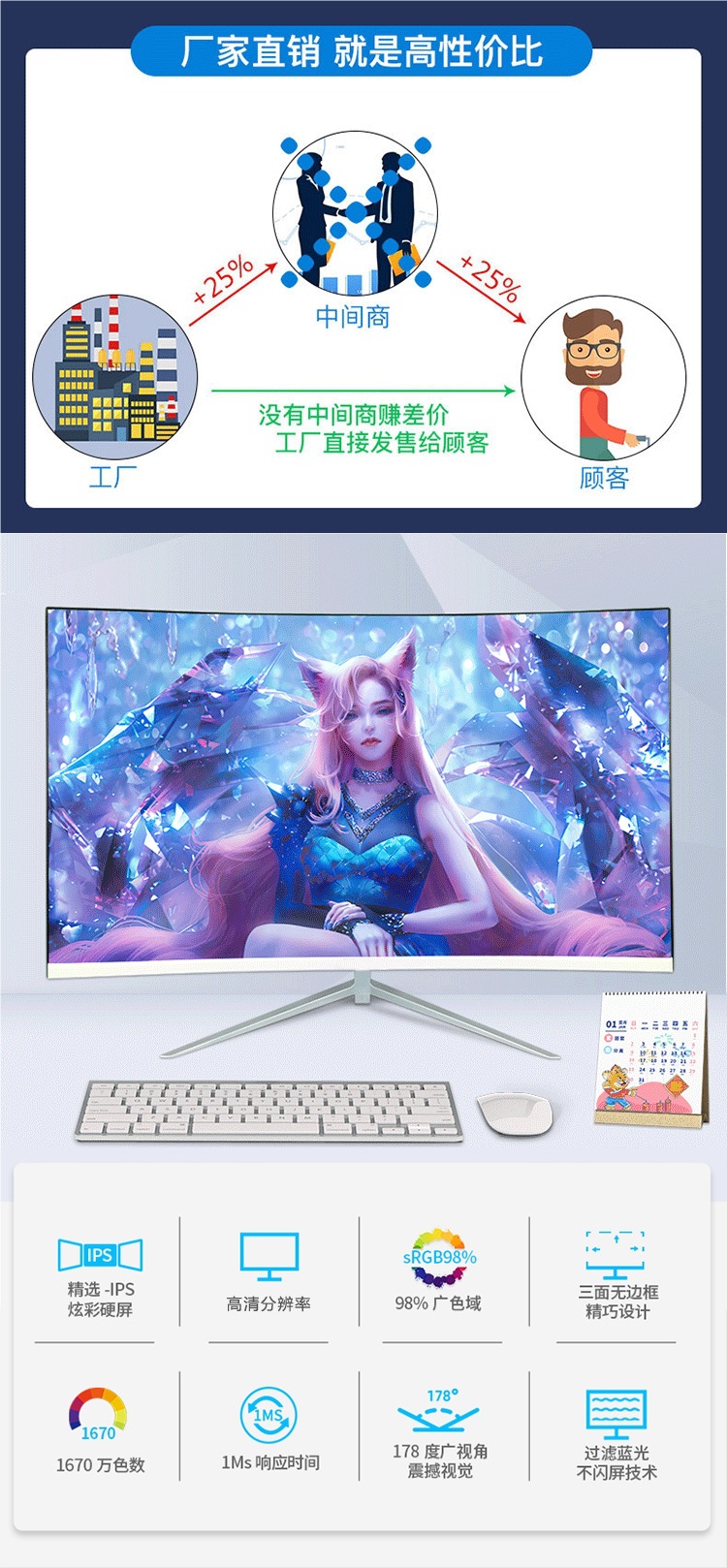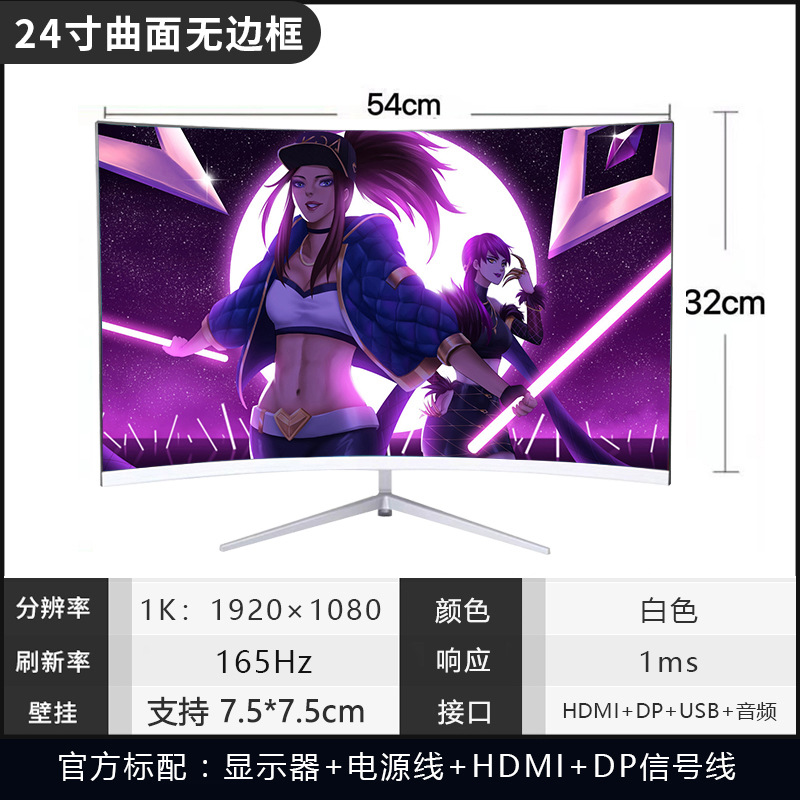 • 24inch 프레임리스 곡선 흰색 1K165HZ-공식 표준 SF Express 무료 배송