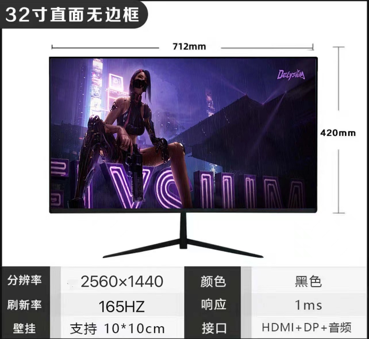 • 32inch 프레임리스 스트레이트 페이스 블랙 2K165HZ e-스포츠 모델 동키콩-공식 표준 SF Express 무료 배송