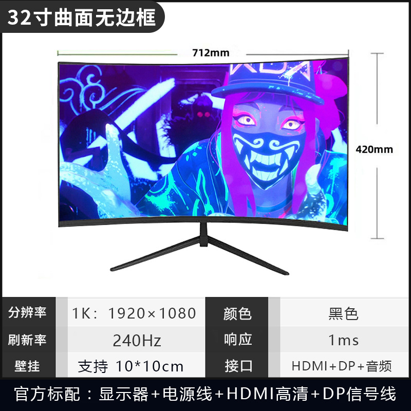 • 32inch 프레임리스 곡선 검정색 1K240HZ 하이 브러시 버전-공식 표준 SF Express 무료 배송