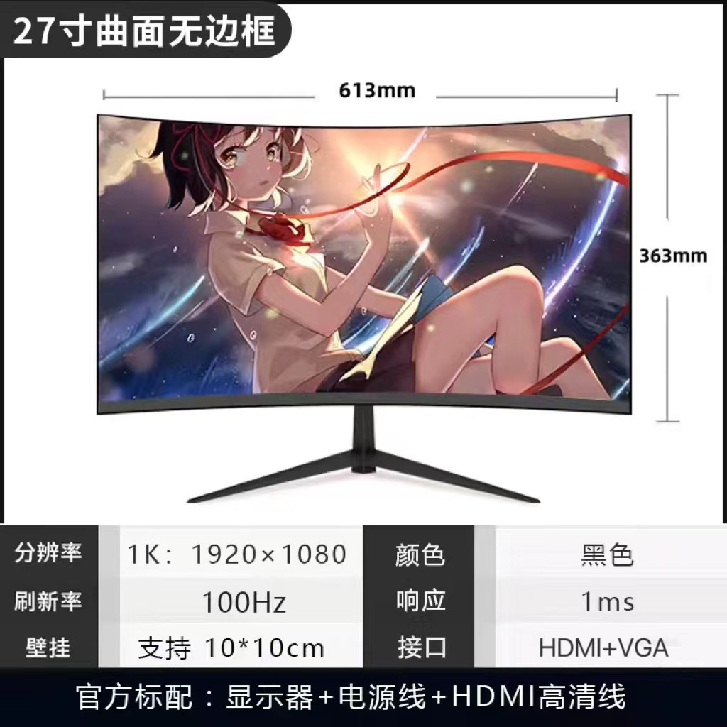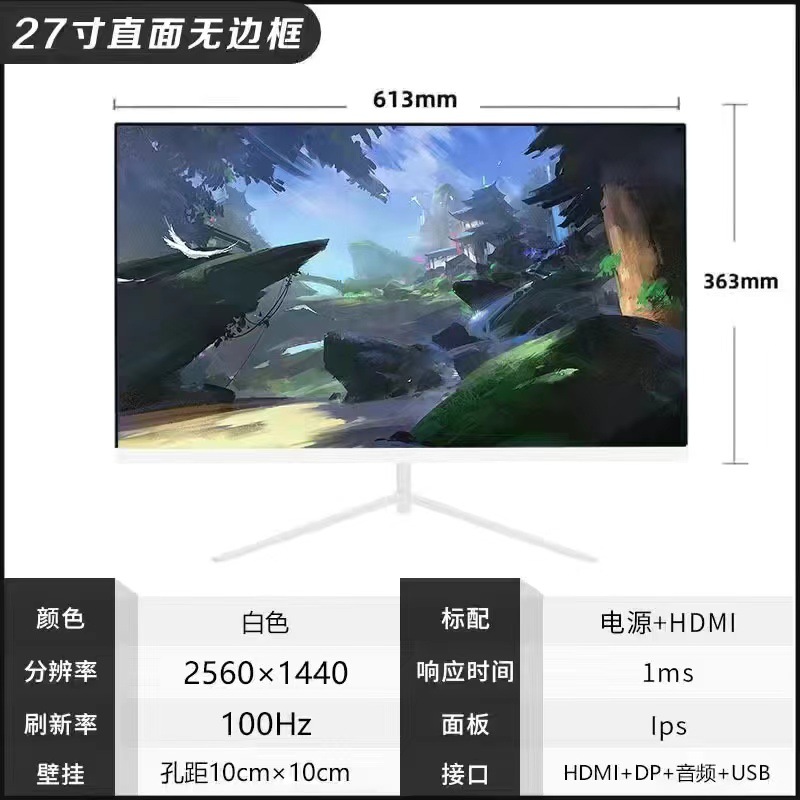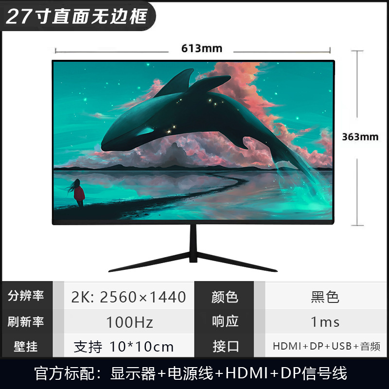• 27inch 프레임리스 스트레이트 페이스 블랙 2K100HZ HD 모델 - 공식 표준 SF Express 무료 배송