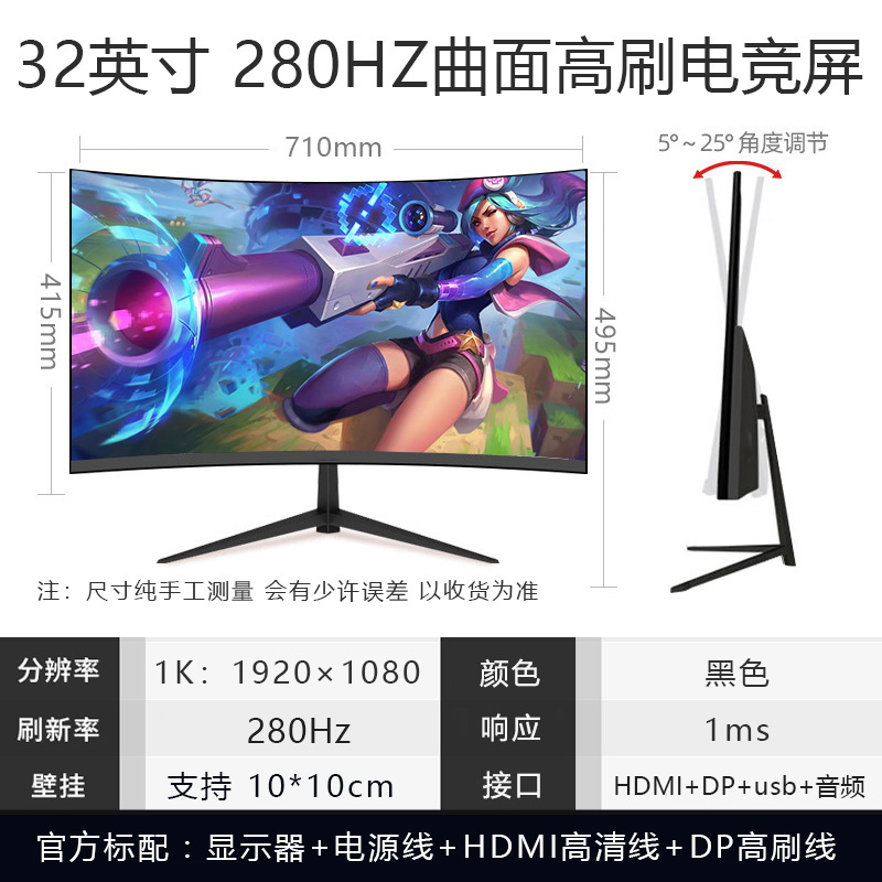 • 32inch 경계선 없는 곡선 검정색 1K280HZ 하이 브러시 버전-공식 표준 SF Express 무료 배송