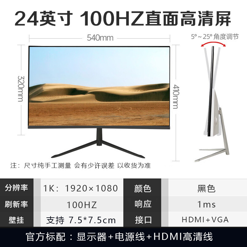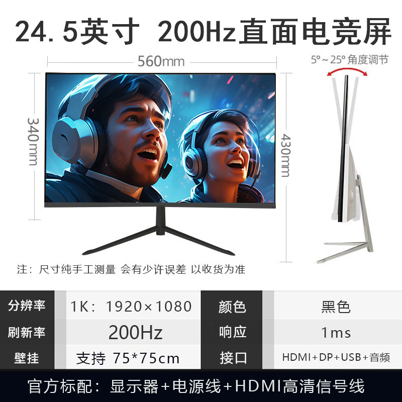 • 24.5inch 프레임리스 스트레이트 페이스 블랙 1K200HZ e-스포츠 하이 브러시 버전-공식 표준 SF Express 무료 배송