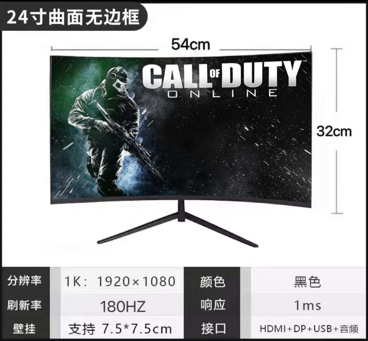 • 24inch 프레임리스 곡선 검정색 1K180HZ 업그레이드 모델 - 공식 표준 SF Express 무료 배송