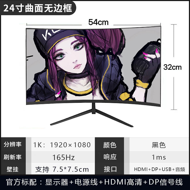 • 24inch 프레임리스 곡선 검정색 1K165HZ-공식 표준 SF Express 무료 배송