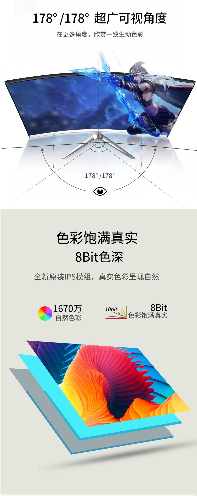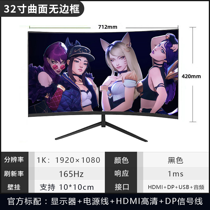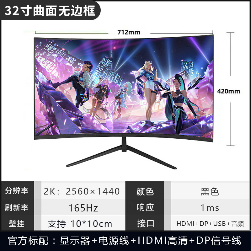 • 32inch 프레임리스 곡선 검정색 2K165HZ e-스포츠 모델 동키콩-공식 표준 SF Express 무료 배송