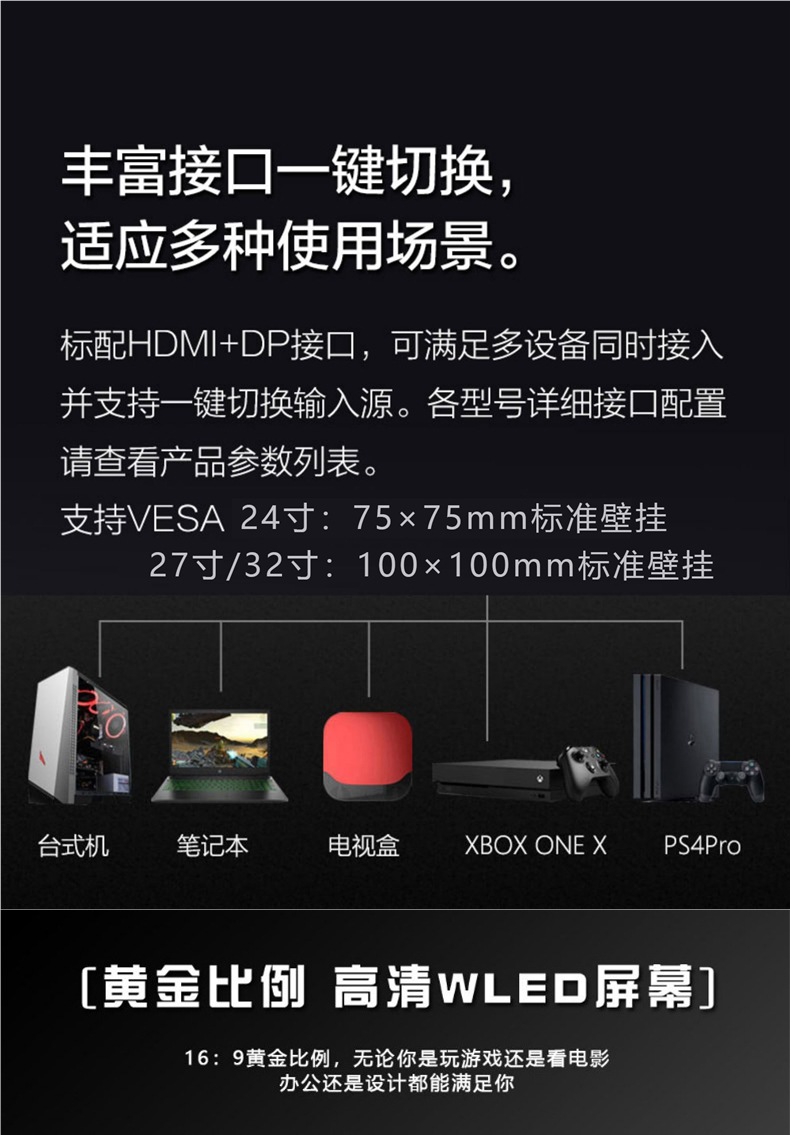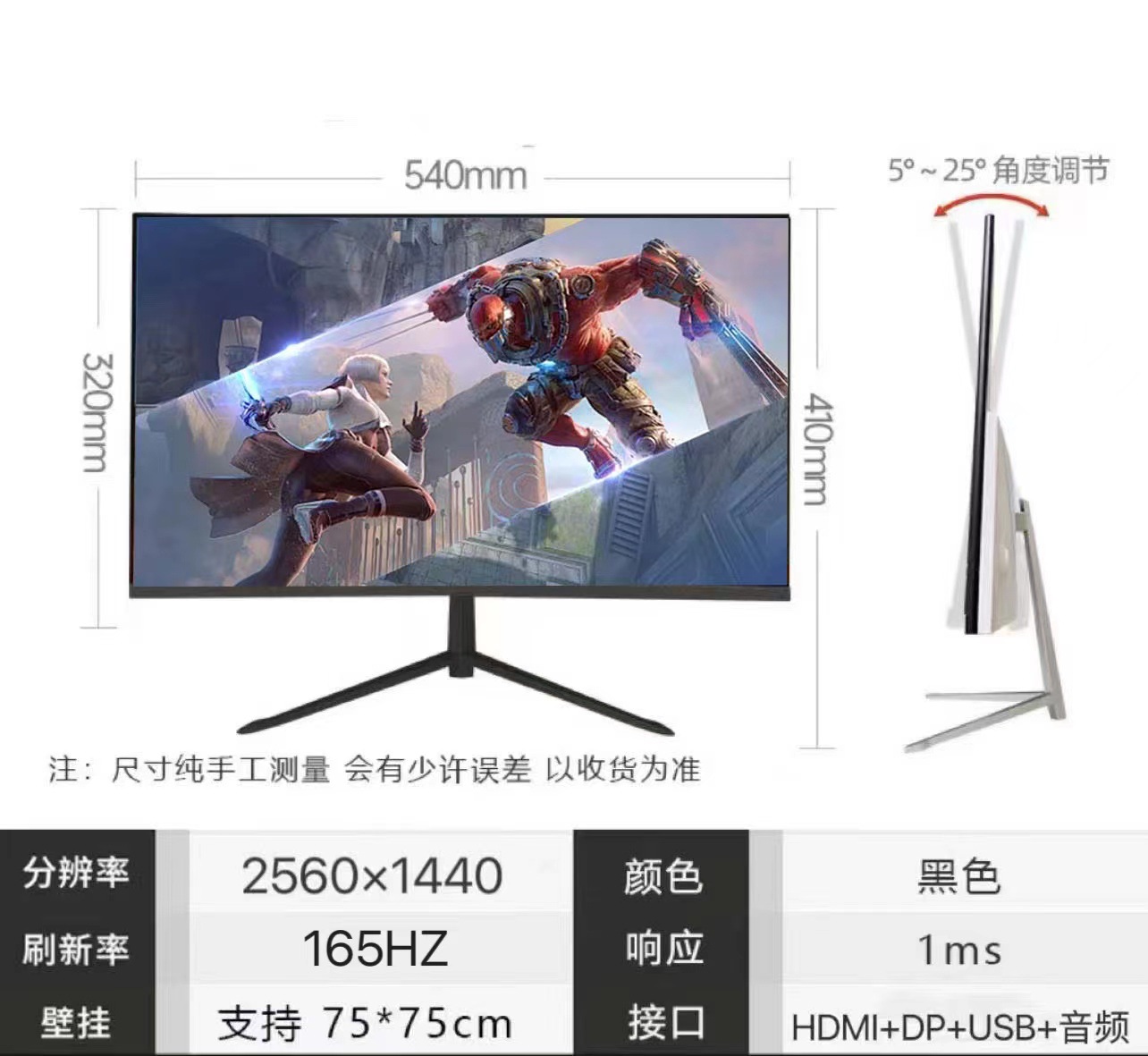 • 27inch 프레임리스 스트레이트 페이스 블랙 2K165HZ e-스포츠 모델 동키콩-공식 표준 SF Express 무료 배송