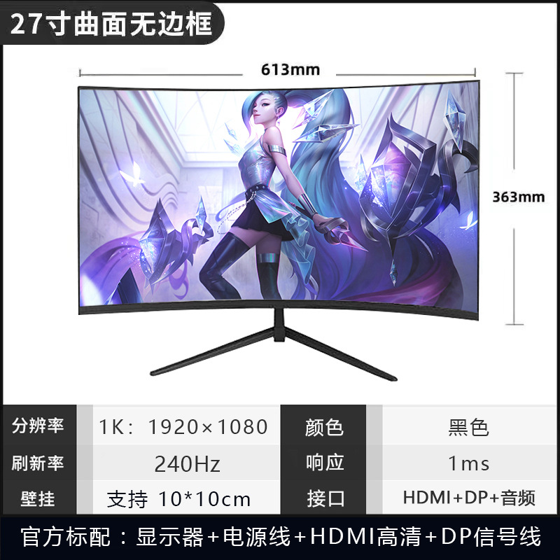 • 27inch 경계선 없는 곡선 검정색 1K240HZ 하이 브러시 버전-공식 표준 SF Express 무료 배송