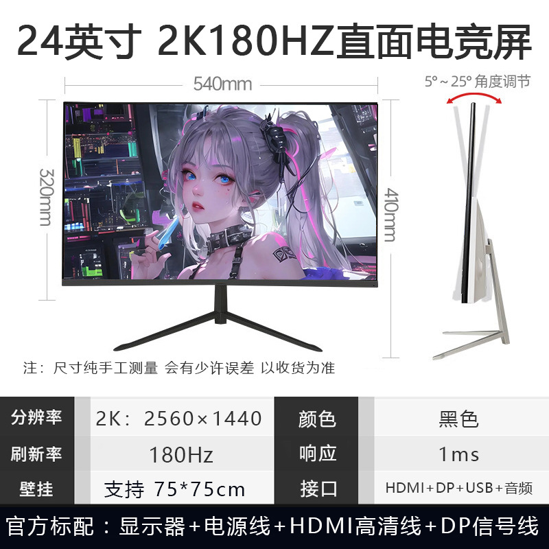 • 24inch 프레임리스 스트레이트 페이스 블랙 2K180HZ e스포츠 모델-공식 표준 SF Express 무료 배송
