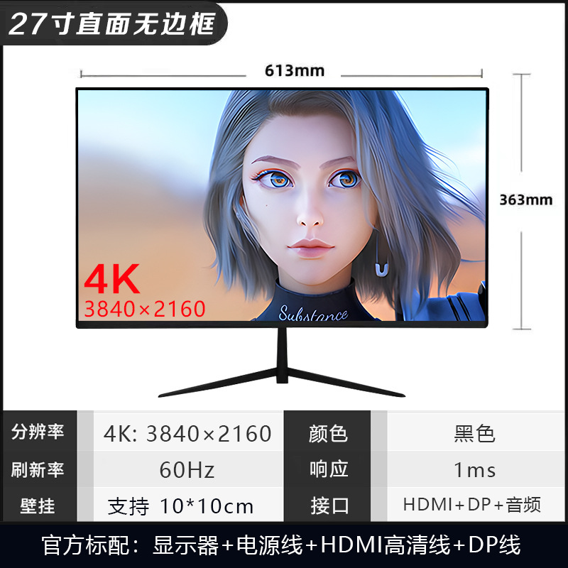 • 27inch 프레임리스 스트레이트 페이스 블랙 4K60HZ HD 디자인 모델 - 공식 표준 SF Express 무료 배송