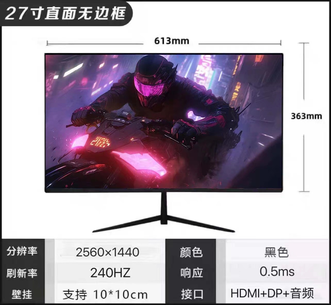 • 27inch 프레임리스 스트레이트 페이스 블랙 2K240HZ 게이밍 모델 - 공식 표준 SF Express 무료 배송