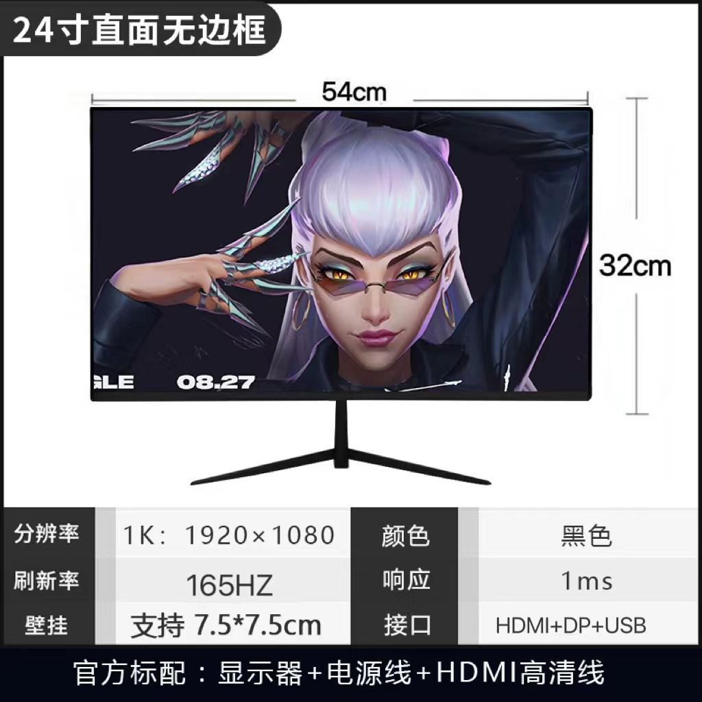 • 24inch 프레임리스 스트레이트 페이스 블랙 1K165HZ-공식 표준 SF Express 무료 배송