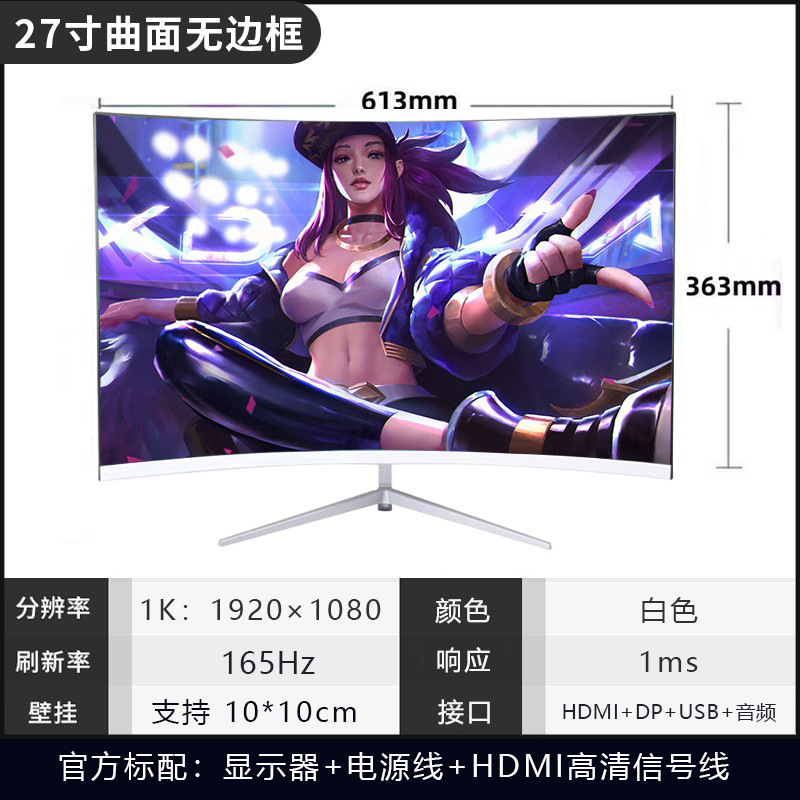 • 27inch 프레임리스 곡선 흰색 1K165HZ-공식 표준 SF Express 무료 배송