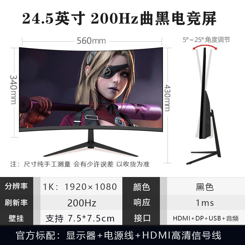 • 24.5inch 프레임리스 곡선 검정색 1K200HZ e-스포츠 하이 브러시 버전-공식 표준 SF Express 무료 배송