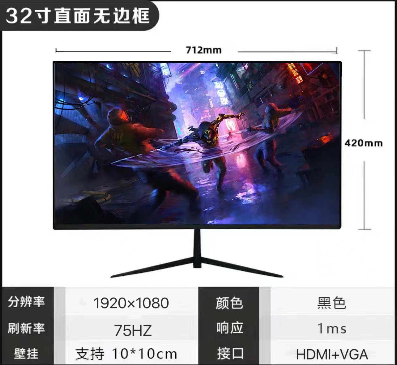 • 32inch 프레임리스 스트레이트 페이스 블랙 1K75HZ-공식 표준 SF Express 무료 배송