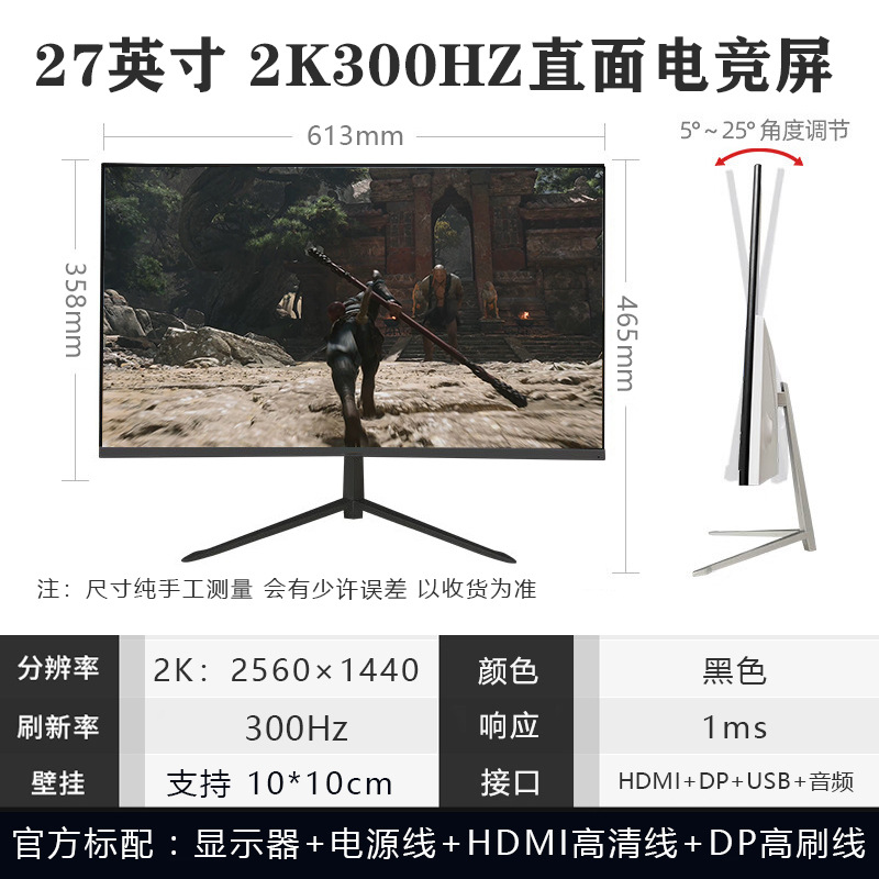 • 27inch 프레임리스 스트레이트 페이스 블랙 2K300HZ 플래그십 탑 버전 - 공식 표준 SF Express 무료 배송
