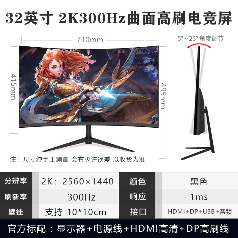 • 32inch 프레임리스 곡선 검정색 2K300HZ 전문 e-스포츠 상단 구성 - 공식 표준 SF Express 무료 배송