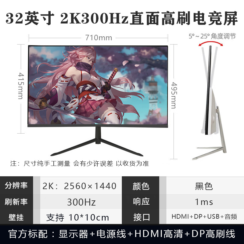 • 32inch 프레임리스 스트레이트 페이스 블랙 2K300HZ 전문 e스포츠 탑 에디션 - 공식 표준 SF Express 무료 배송