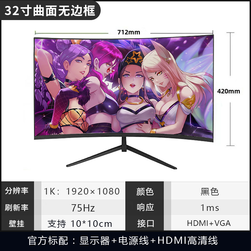 • 32inch 프레임리스 곡선 검정색 1K75HZ-공식 표준 SF Express 무료 배송