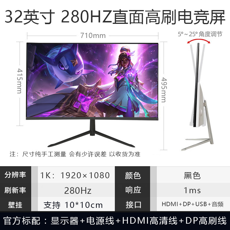 • 32inch 프레임리스 스트레이트 페이스 블랙 1K280HZ 하이 브러시 버전 - 공식 표준 SF Express 무료 배송