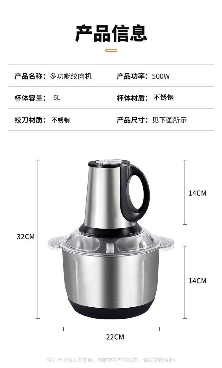 5 리터 가정용 고출력 고기 분쇄기 식품 믹서 새로운 야채 고추 그라인더 다기능 요리 기계