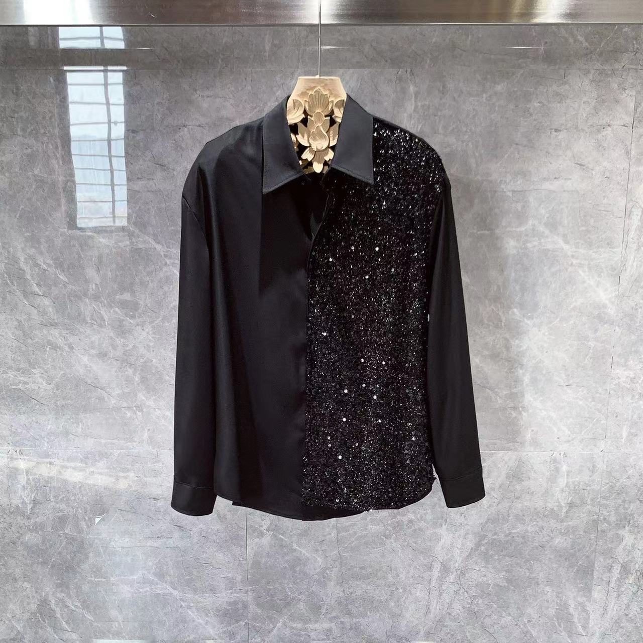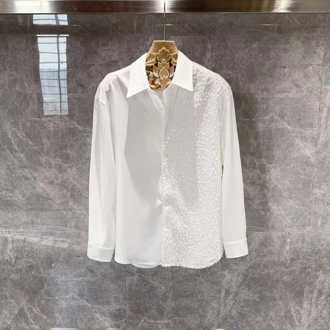 2023 새로운 디자인 틈새 긴팔 셔츠 남성 한국 스타일 유행 헤어 스타일리스트 잘 생긴 얼음 실크 셔츠 도매스토어 가기