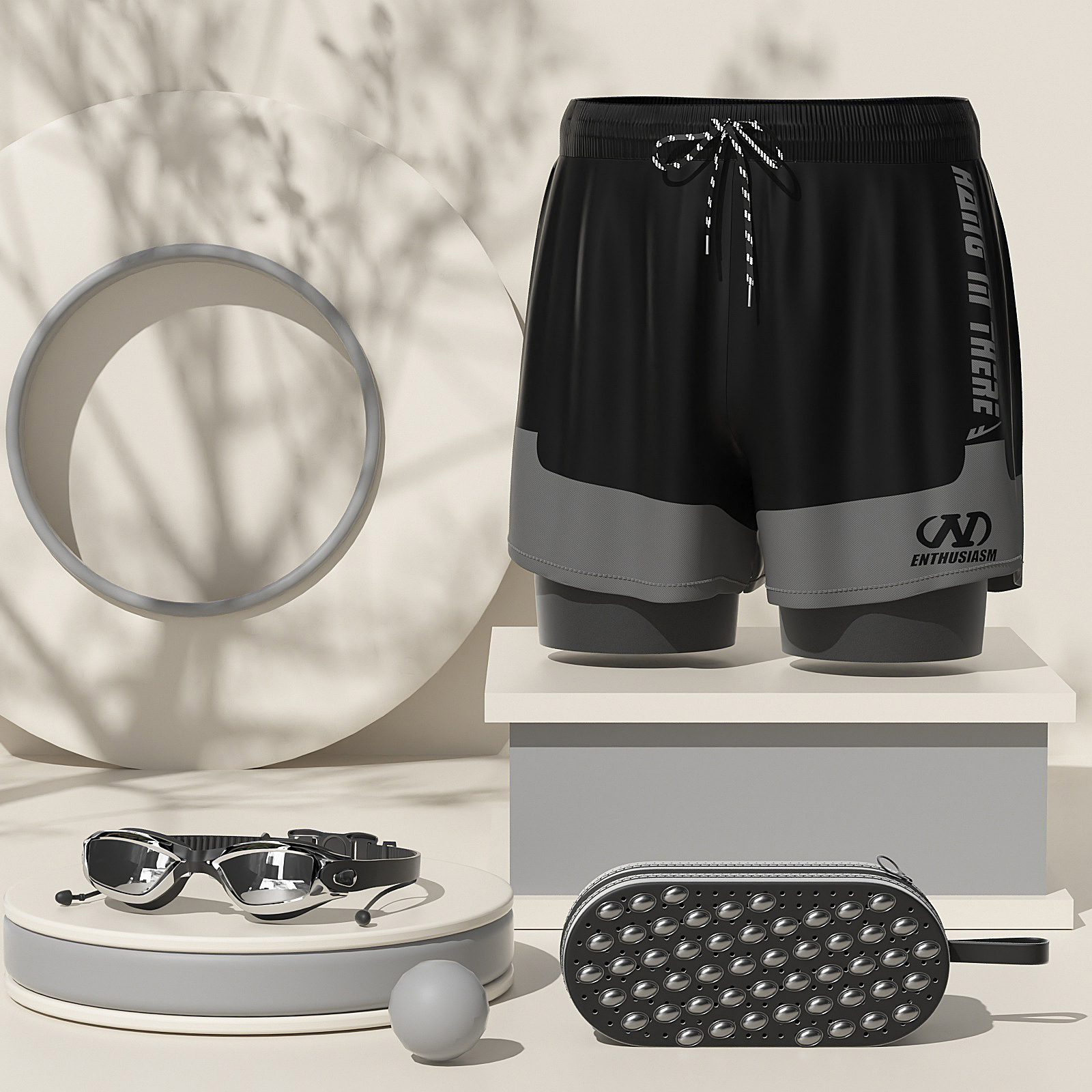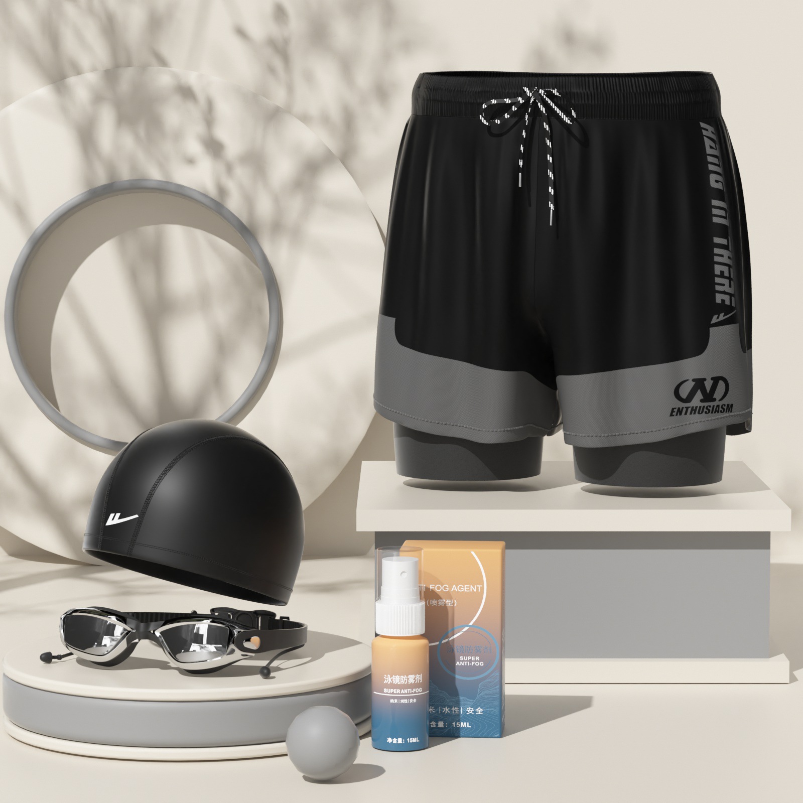 남성용 풀백 수영 팬츠, 5부 속건성 2025년 신형 수영모, 수영 고글, 3종 세트, 당황스러운 수영 장비 풀세트스토어 가기