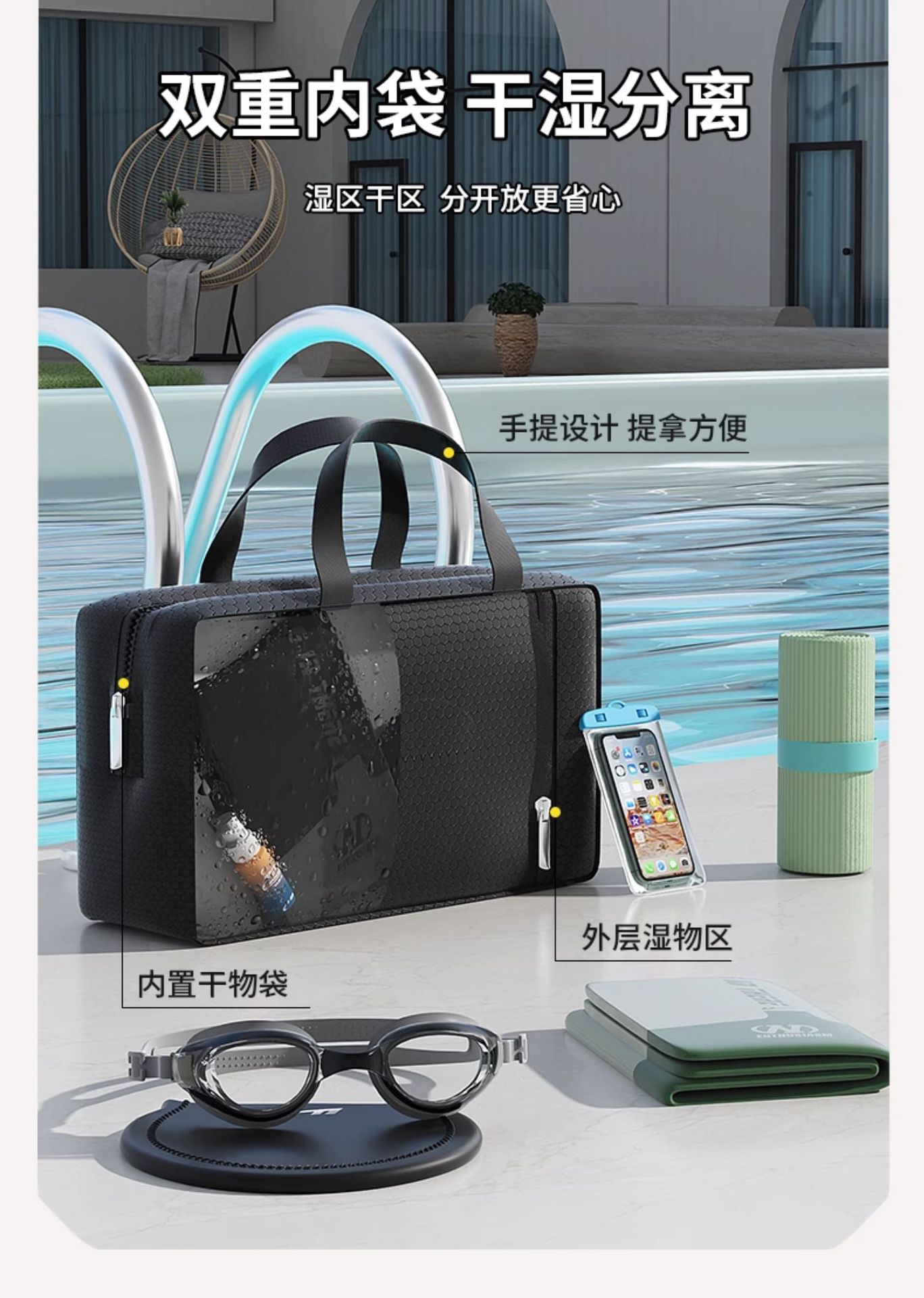 • 모윤 블랙앤그레이 + 수영모 + 수영고글 + 수영가방 [새 업그레이드 ~ 건습분리백]