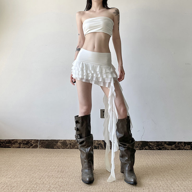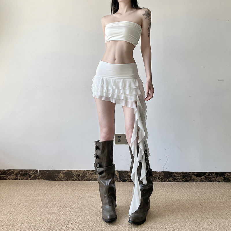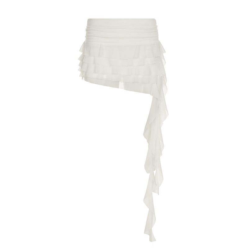 2025 여자 여름 방학 우아한 불규칙한 러플 스커트 스파이스 걸 쌓아 올매치 솔리드 컬러 스커트